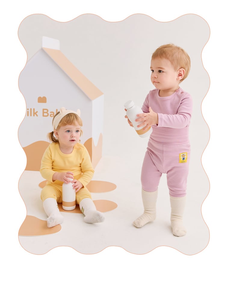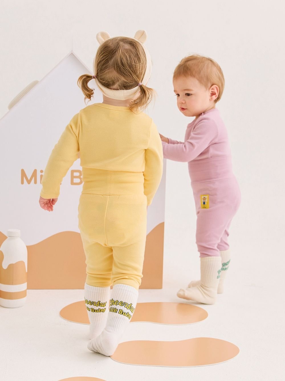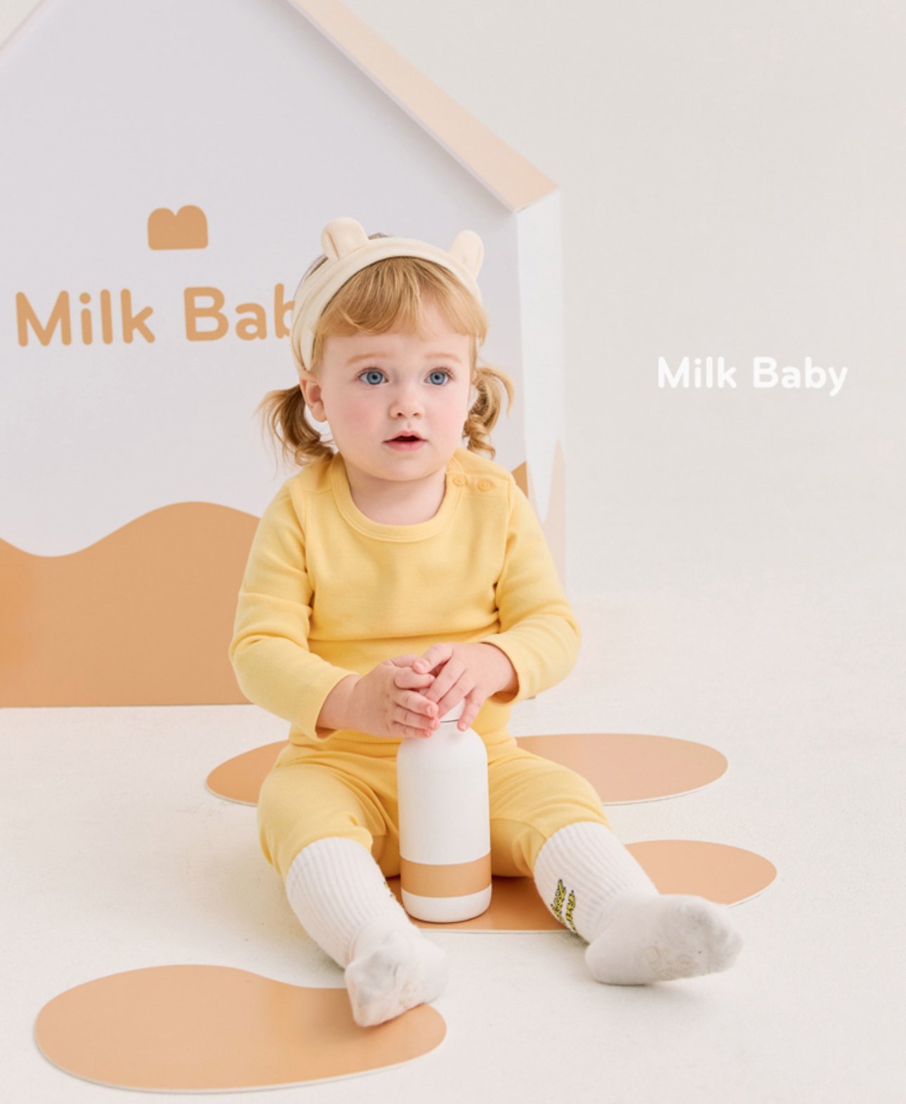 🍂預訂 韓國直送🍂🇰🇷Milk Baby兩色純色小熊標籤長袖防脹氣家居服上下套裝