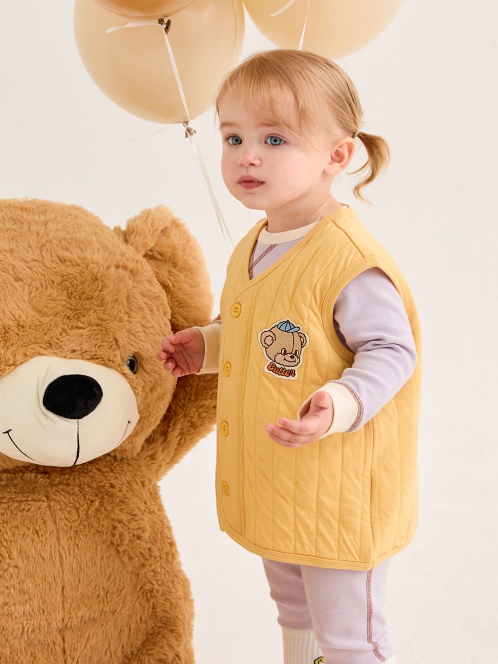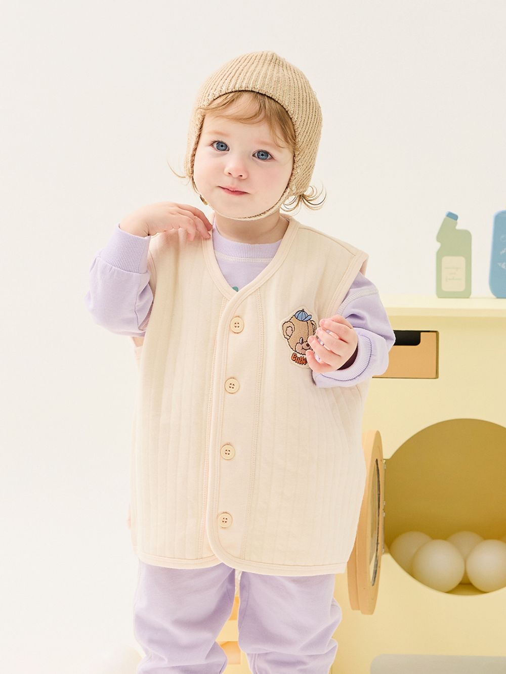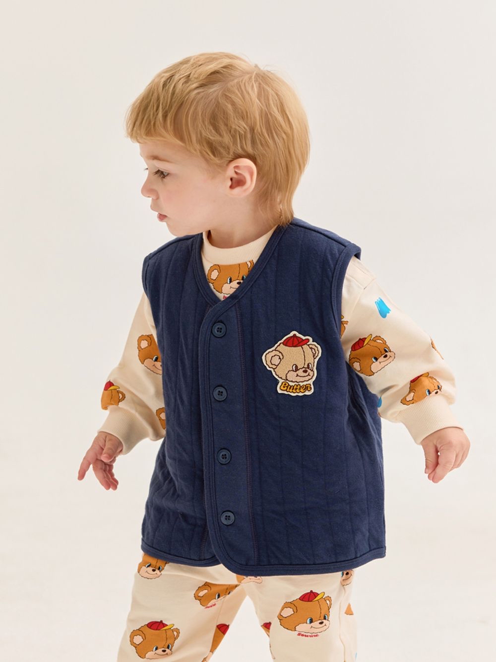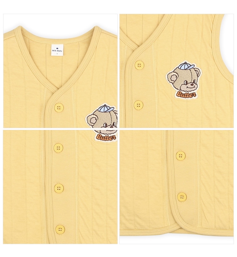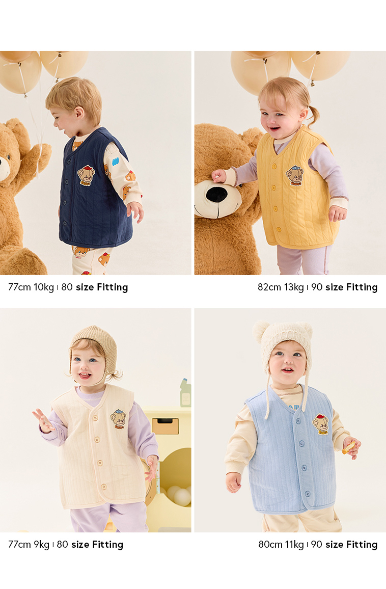 🍂預訂 韓國直送🍂🇰🇷Milk Baby四色小熊刺繡貼花絎縫超寬鬆背心外套