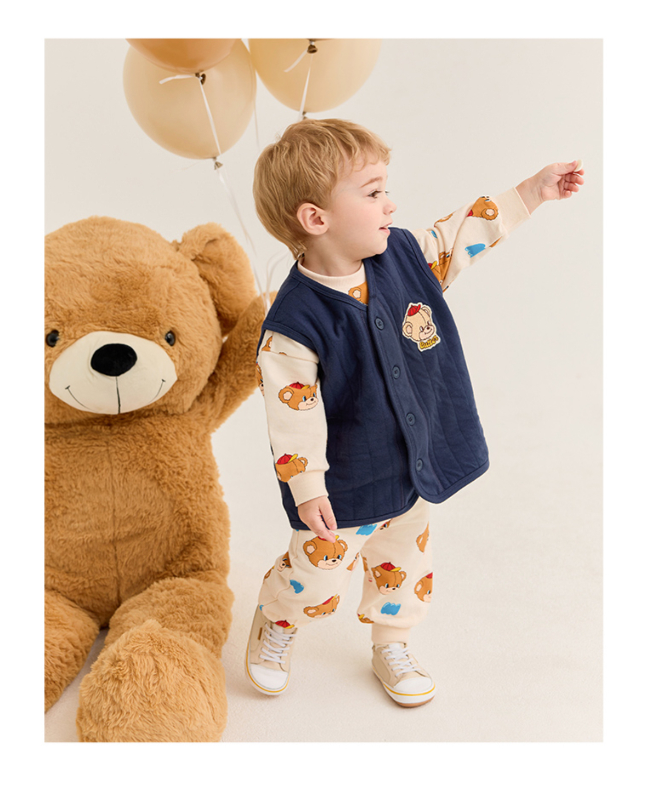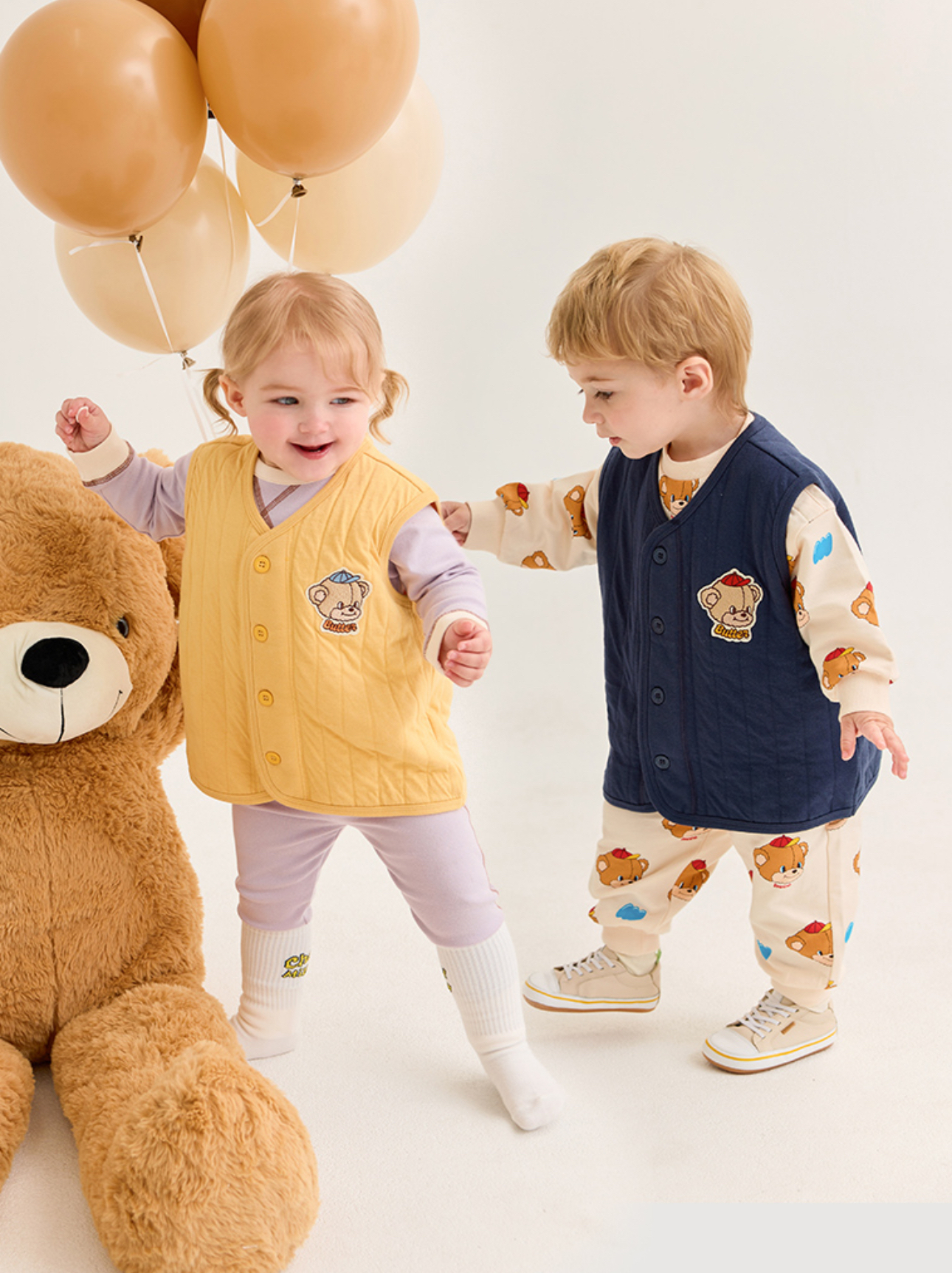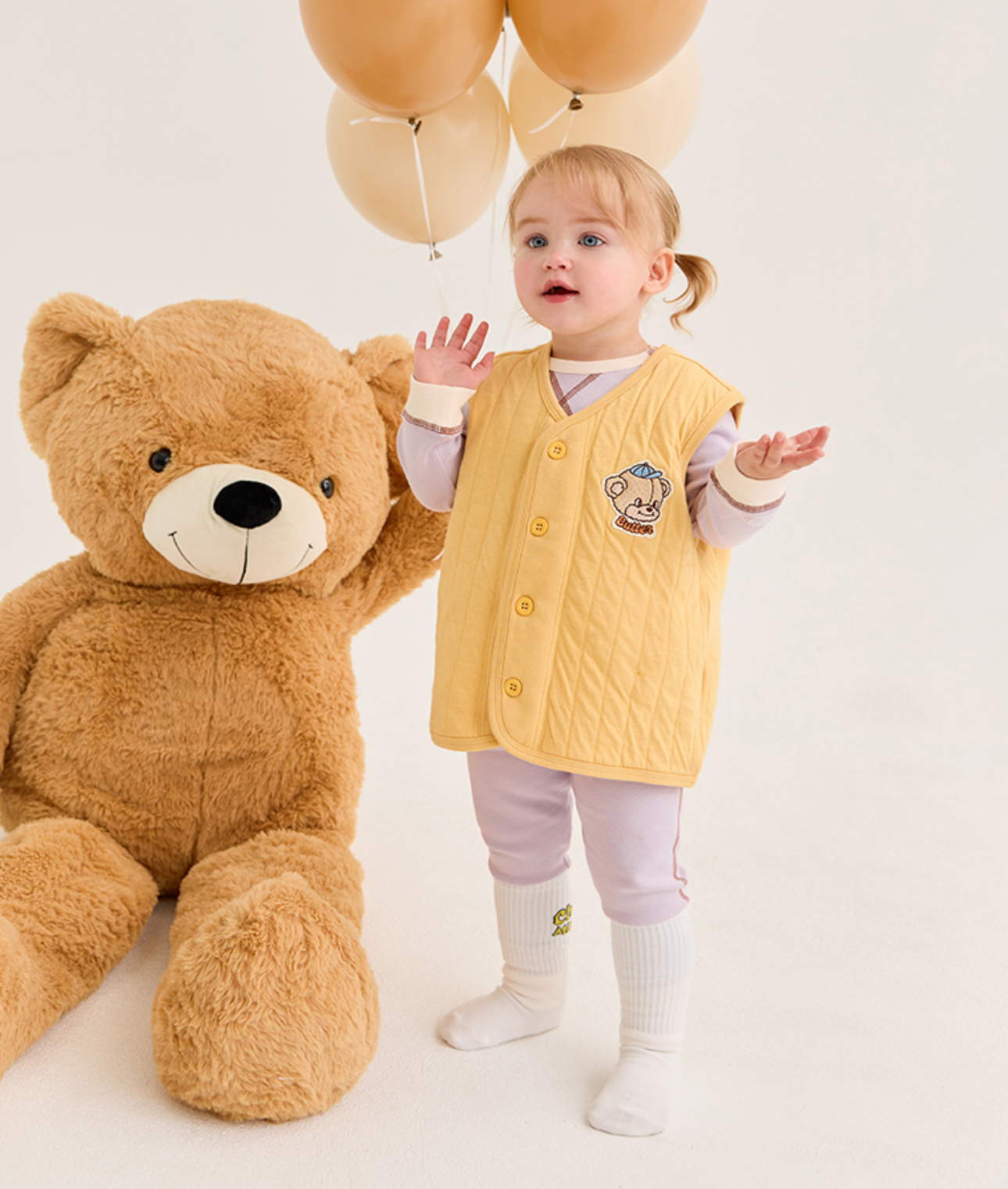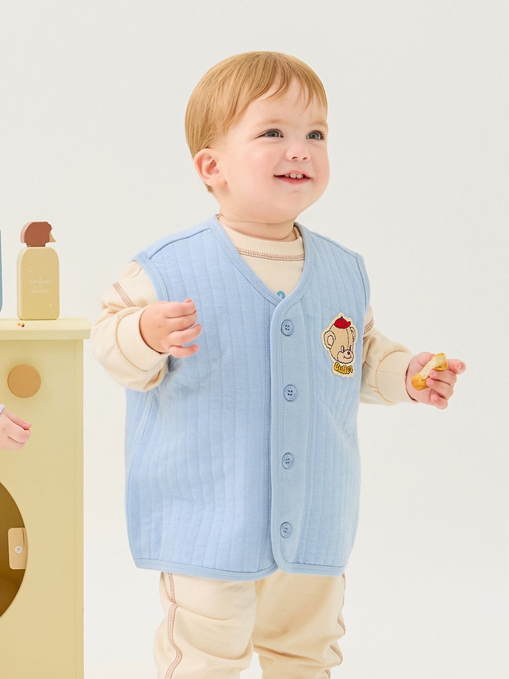 🍂預訂 韓國直送🍂🇰🇷Milk Baby四色小熊刺繡貼花絎縫超寬鬆背心外套