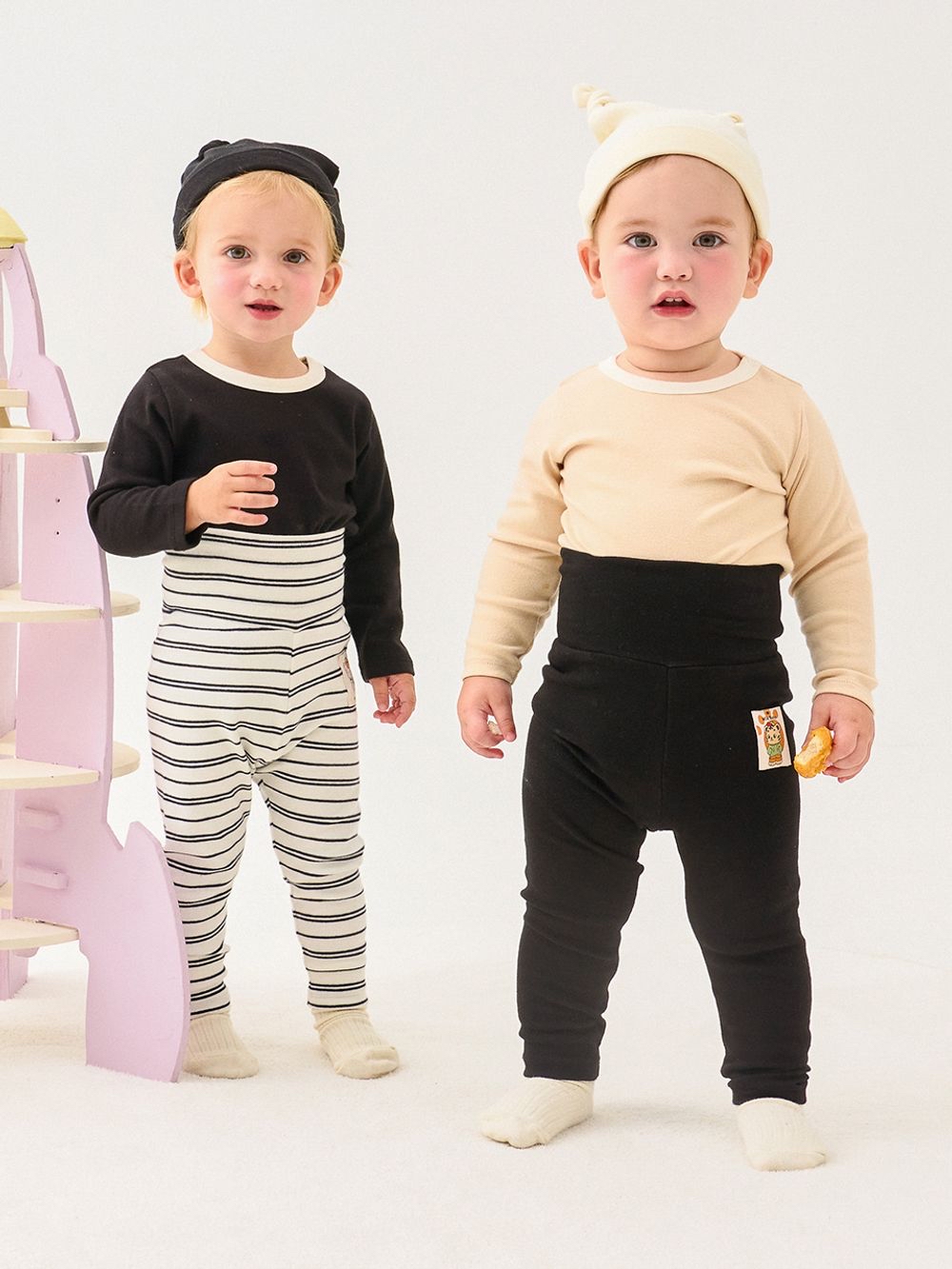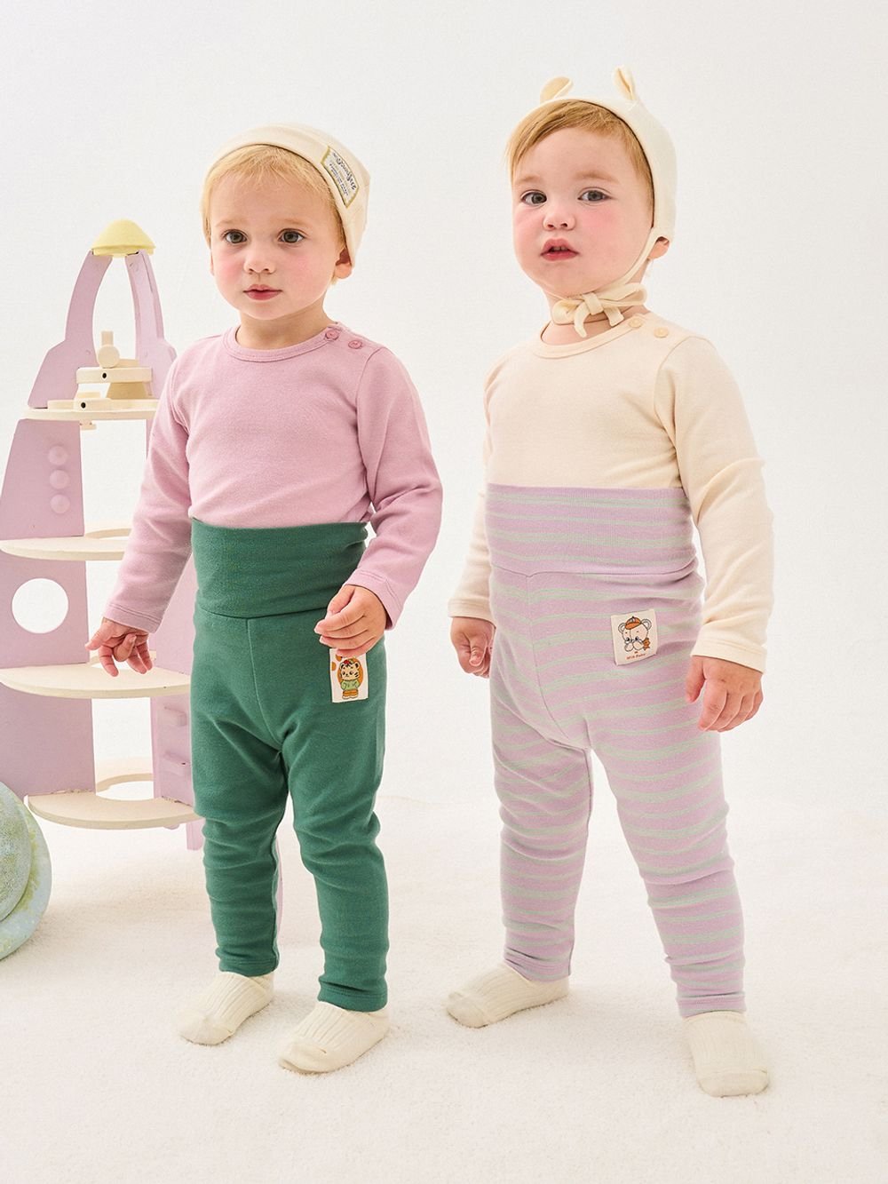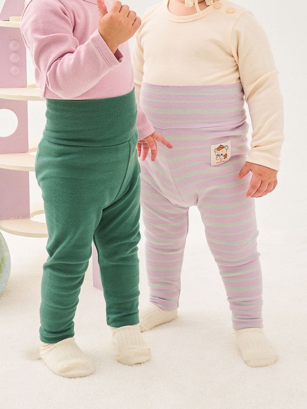 🍂預訂 韓國直送🍂🇰🇷Milk Baby四色純色+條紋標籤防脹氣長褲兩件套