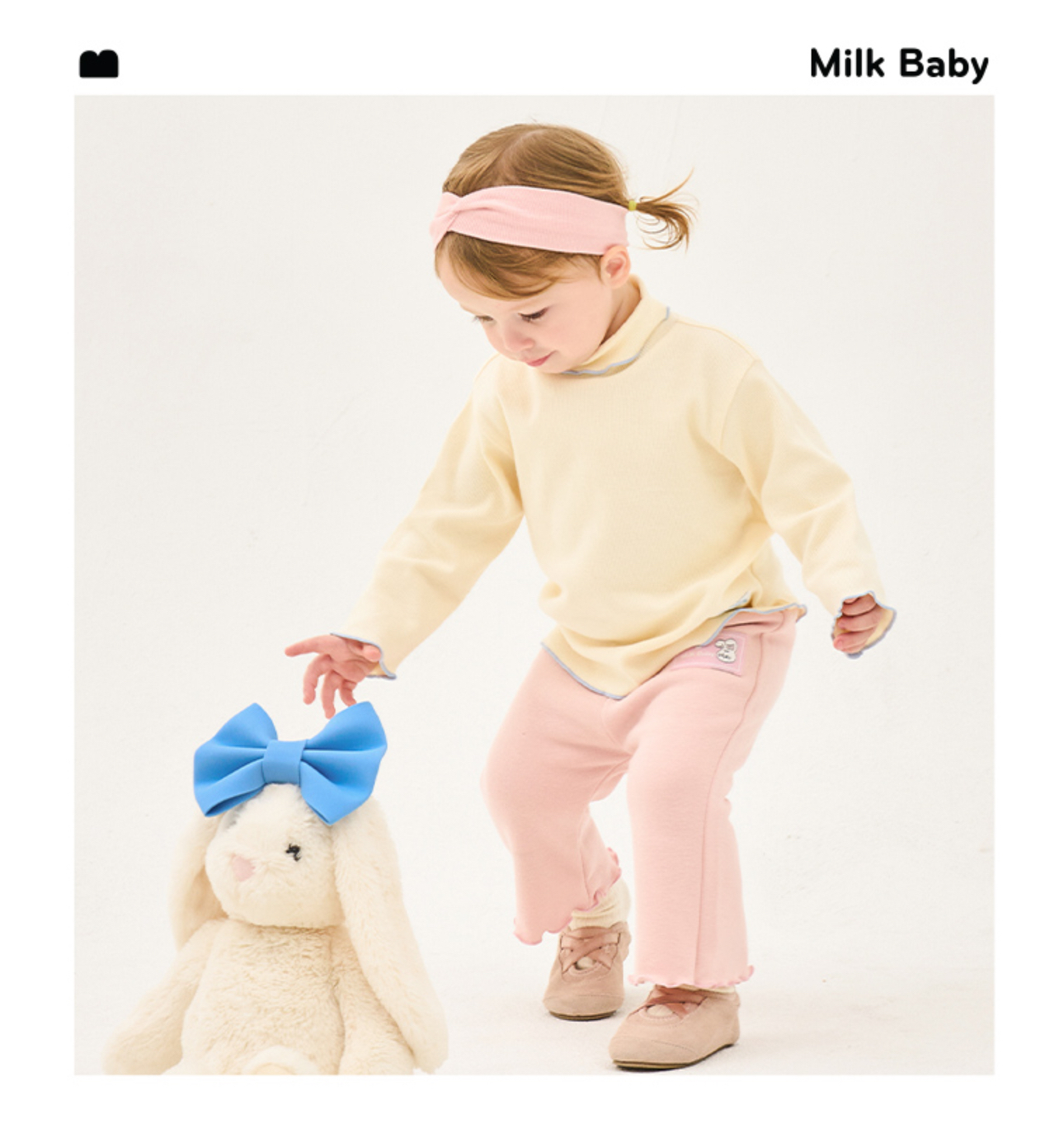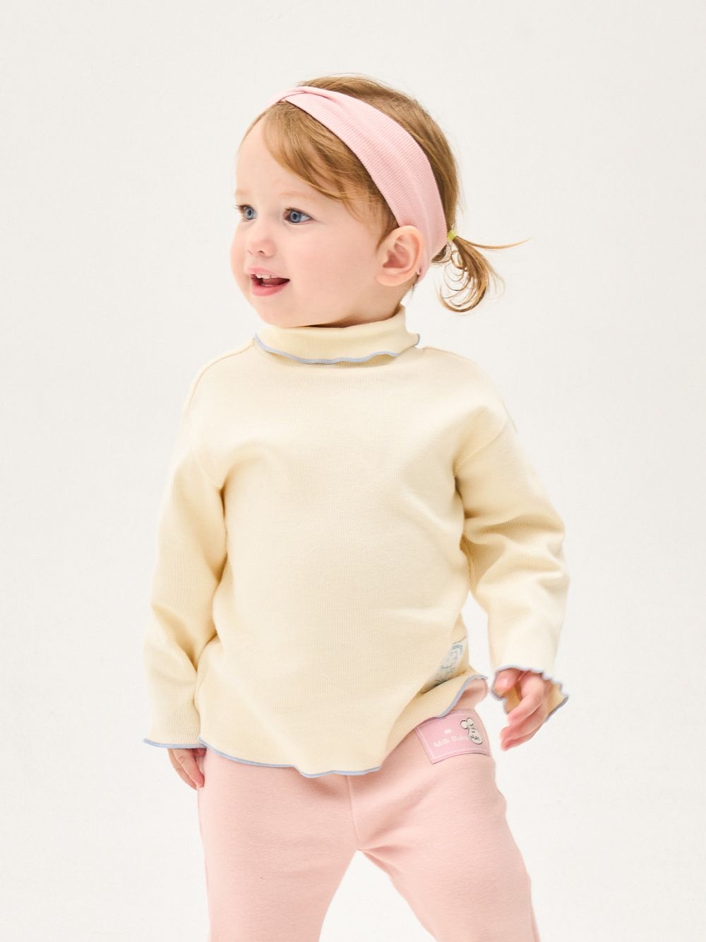 🍂預訂 韓國直送🍂🇰🇷Milk Baby小熊標籤線色羅紋長袖高領上衣