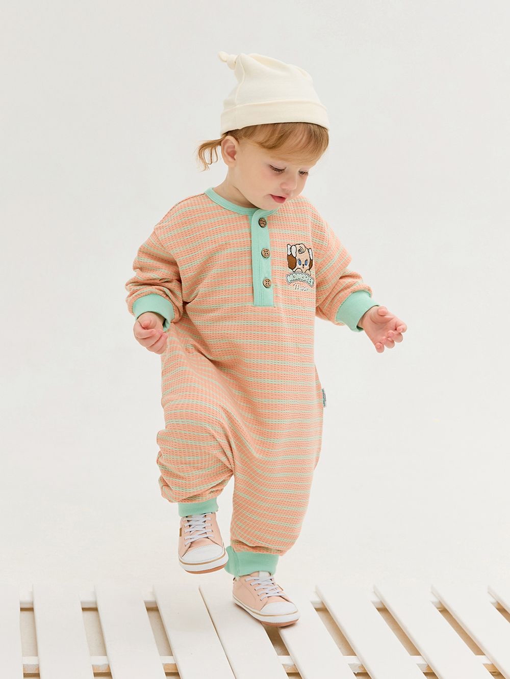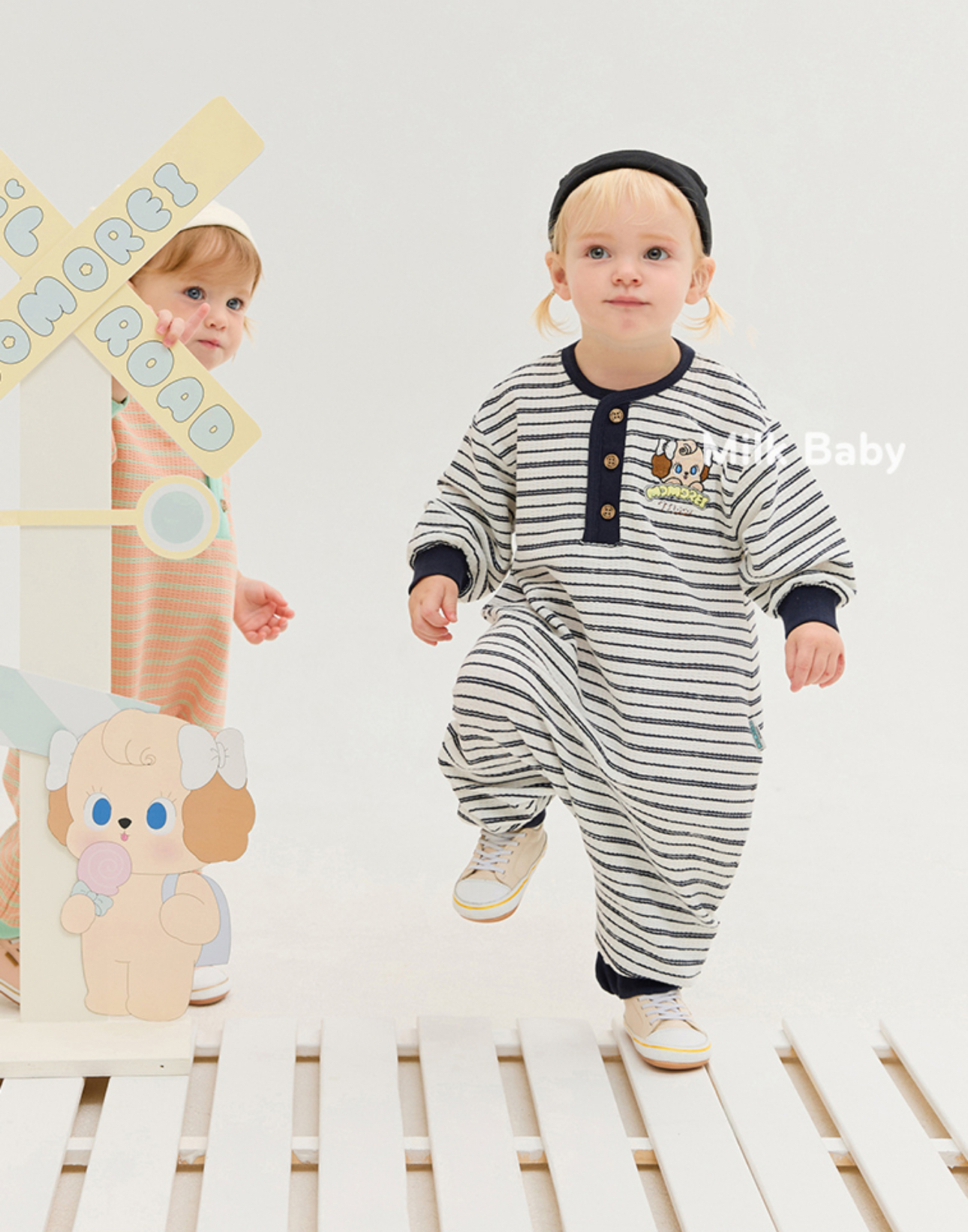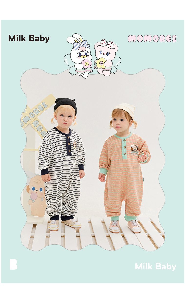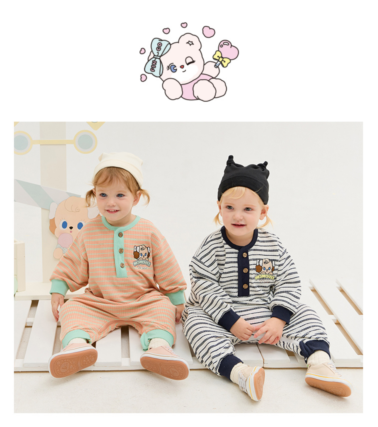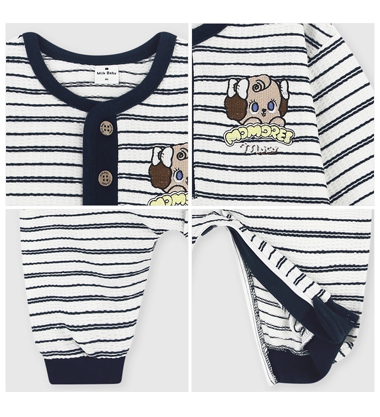 🍂預訂 韓國直送🍂🇰🇷Milk Baby x MOMOREI角色刺繡條紋華夫格超寬鬆長袖連身服