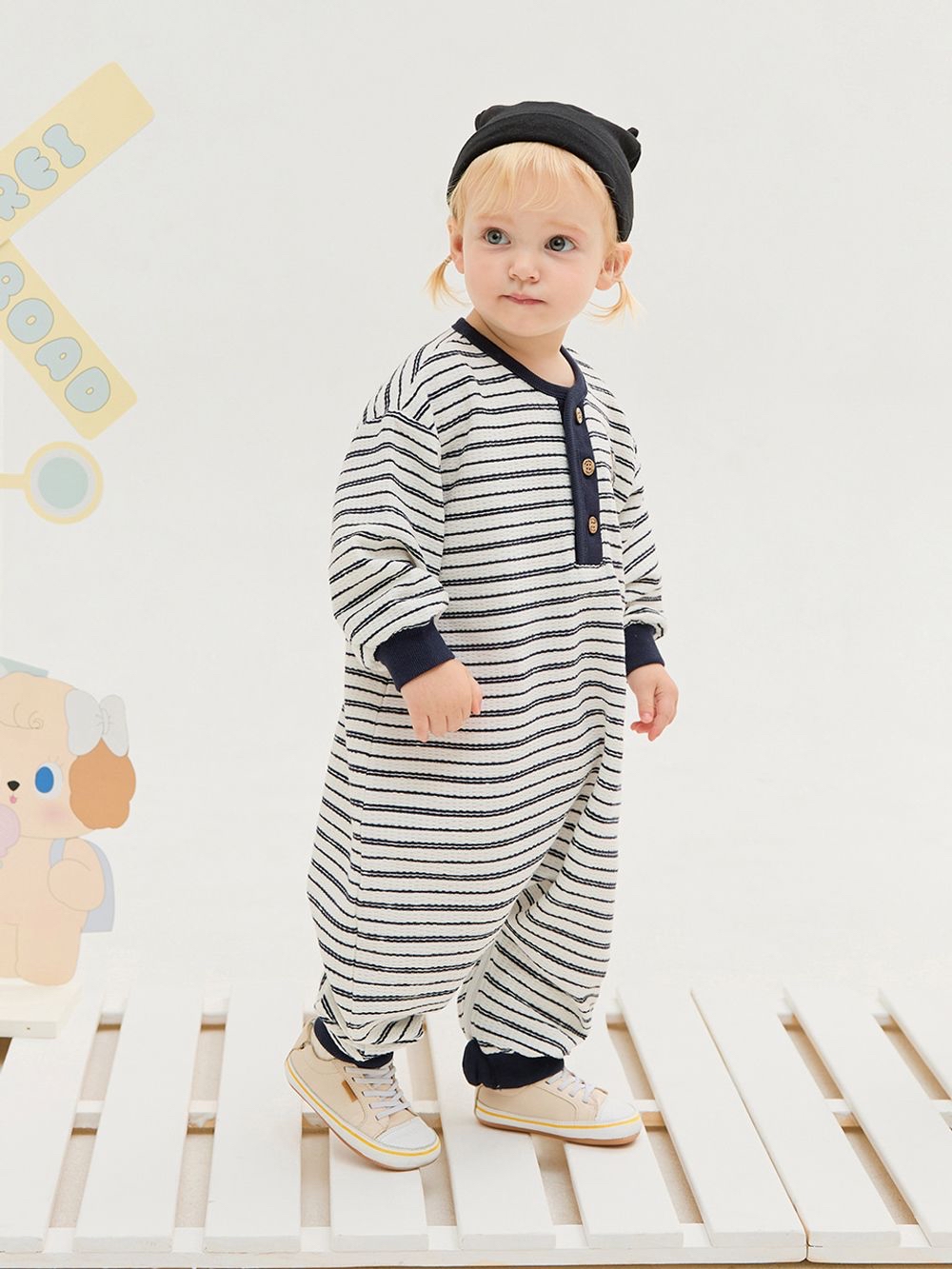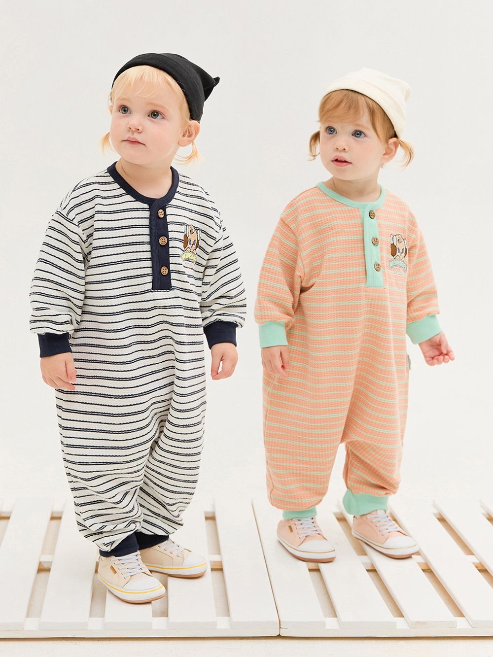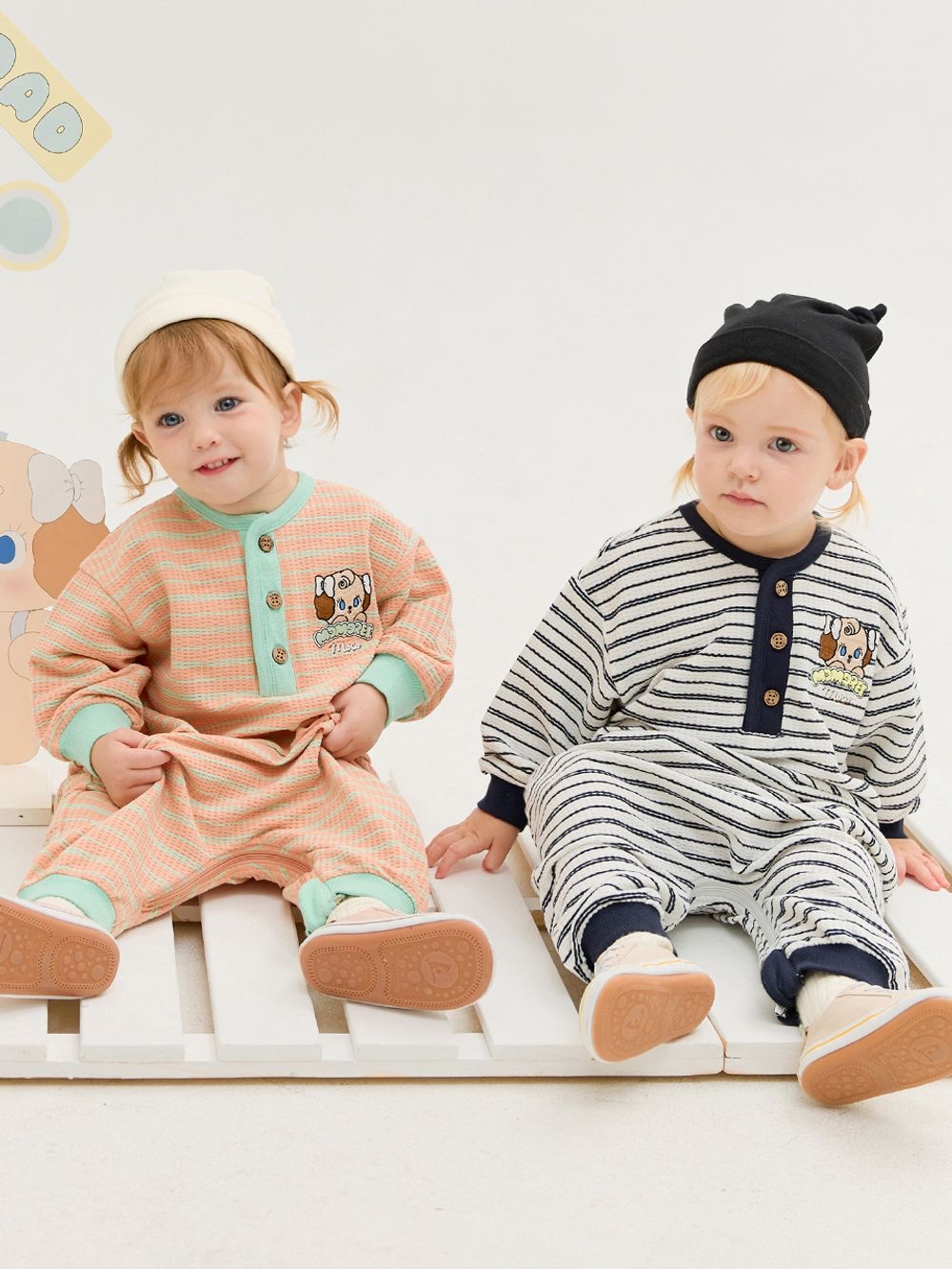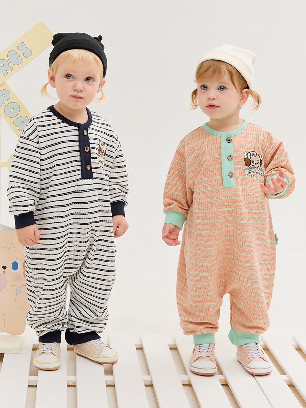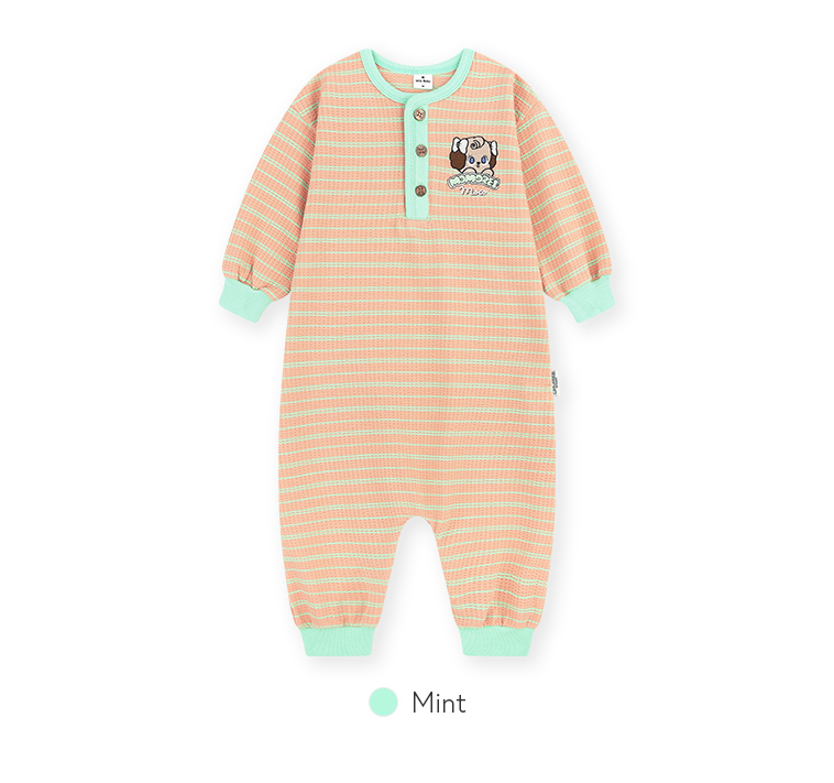 🍂預訂 韓國直送🍂🇰🇷Milk Baby x MOMOREI角色刺繡條紋華夫格超寬鬆長袖連身服