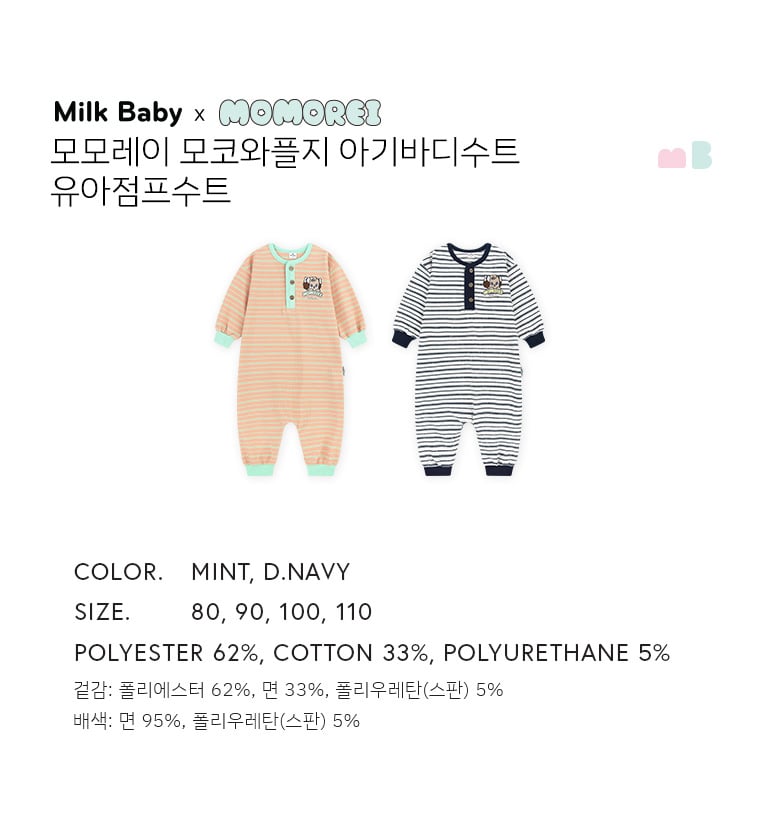 🍂預訂 韓國直送🍂🇰🇷Milk Baby x MOMOREI角色刺繡條紋華夫格超寬鬆長袖連身服 🚚預計貨期:約14-21個工作日 (貨期有機會提早或延遲) 🎨顏色:薄荷|海軍藍 📐尺碼:80|90|100|110 聚酯纖維 62%, 棉 33%, 聚氨酯 5% 韓國布料 中國代工 風格資料 合身 :超寬鬆 彈性 :出色 厚度 :中等 襯墊 :不存在 穿著季節 :春天、秋天 📦熱門貨品將跟據客人付款先後次序分配💞 🔺如產品出現斷貨將會全數退回🔺 ⚠️除非有列明 否則不包含其他服飾及配飾