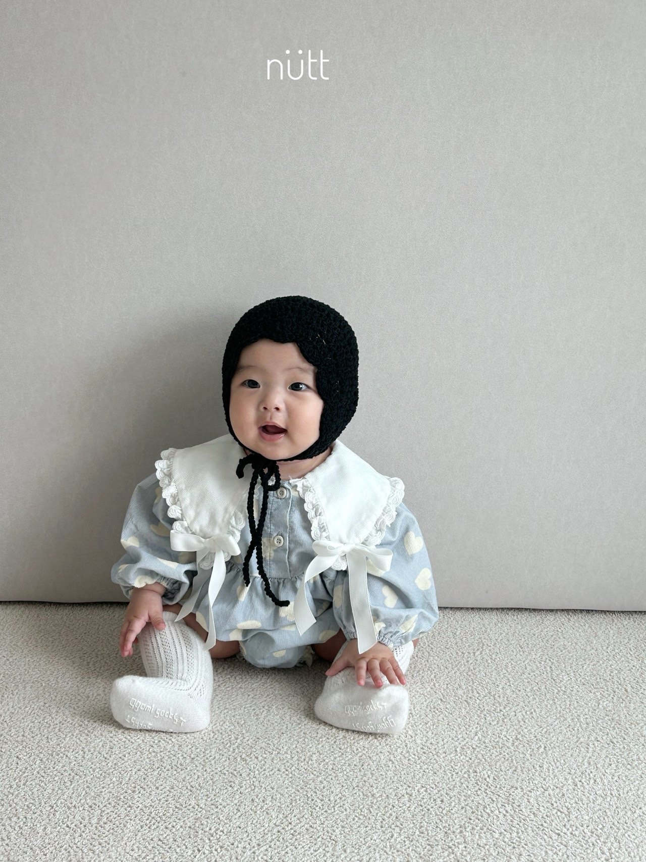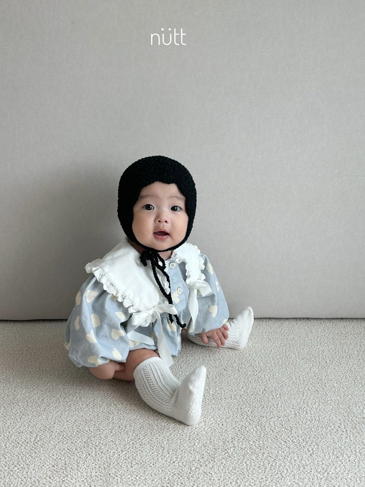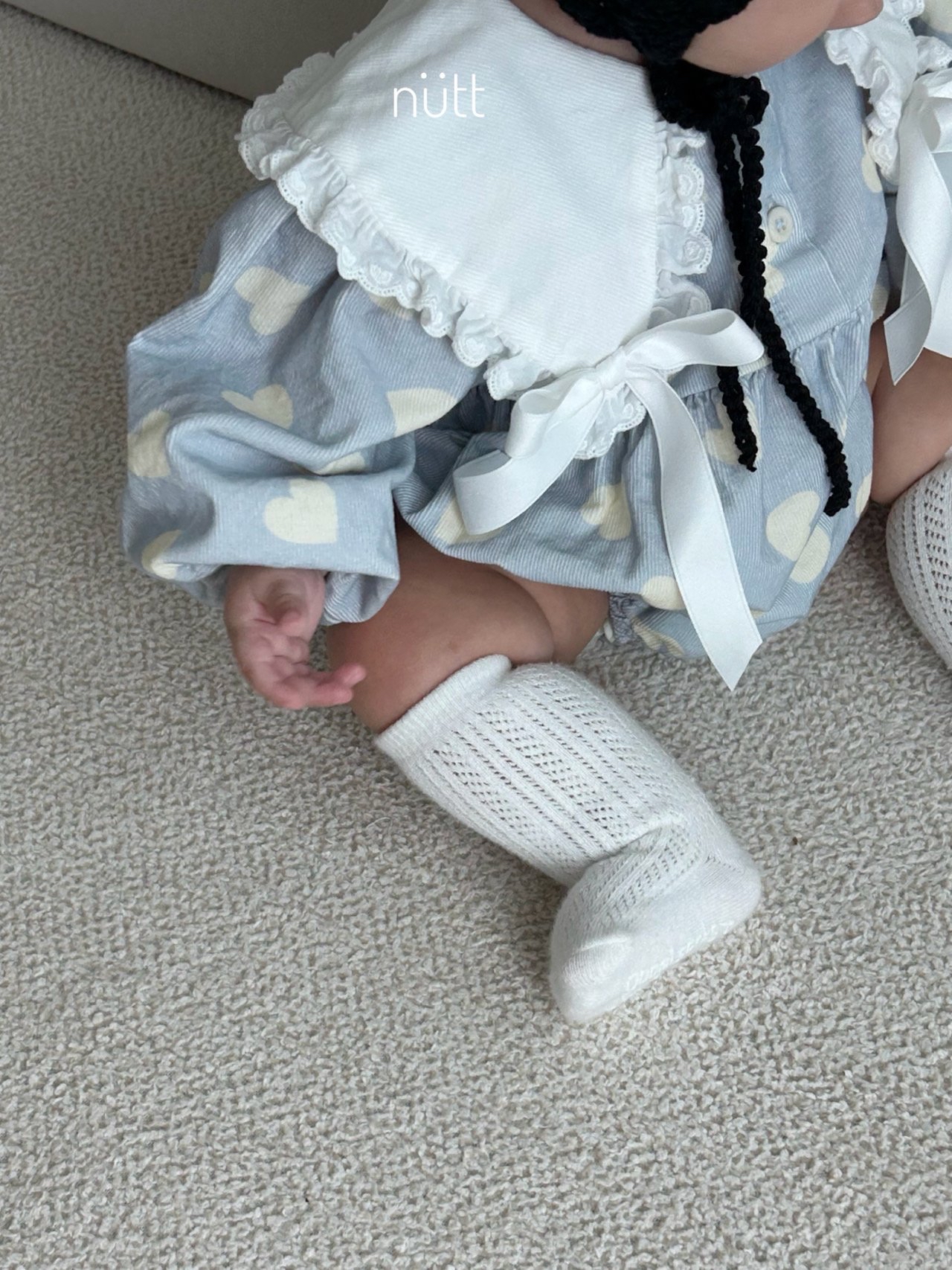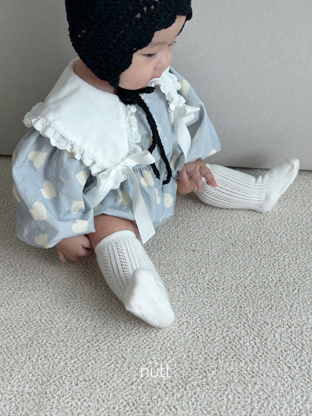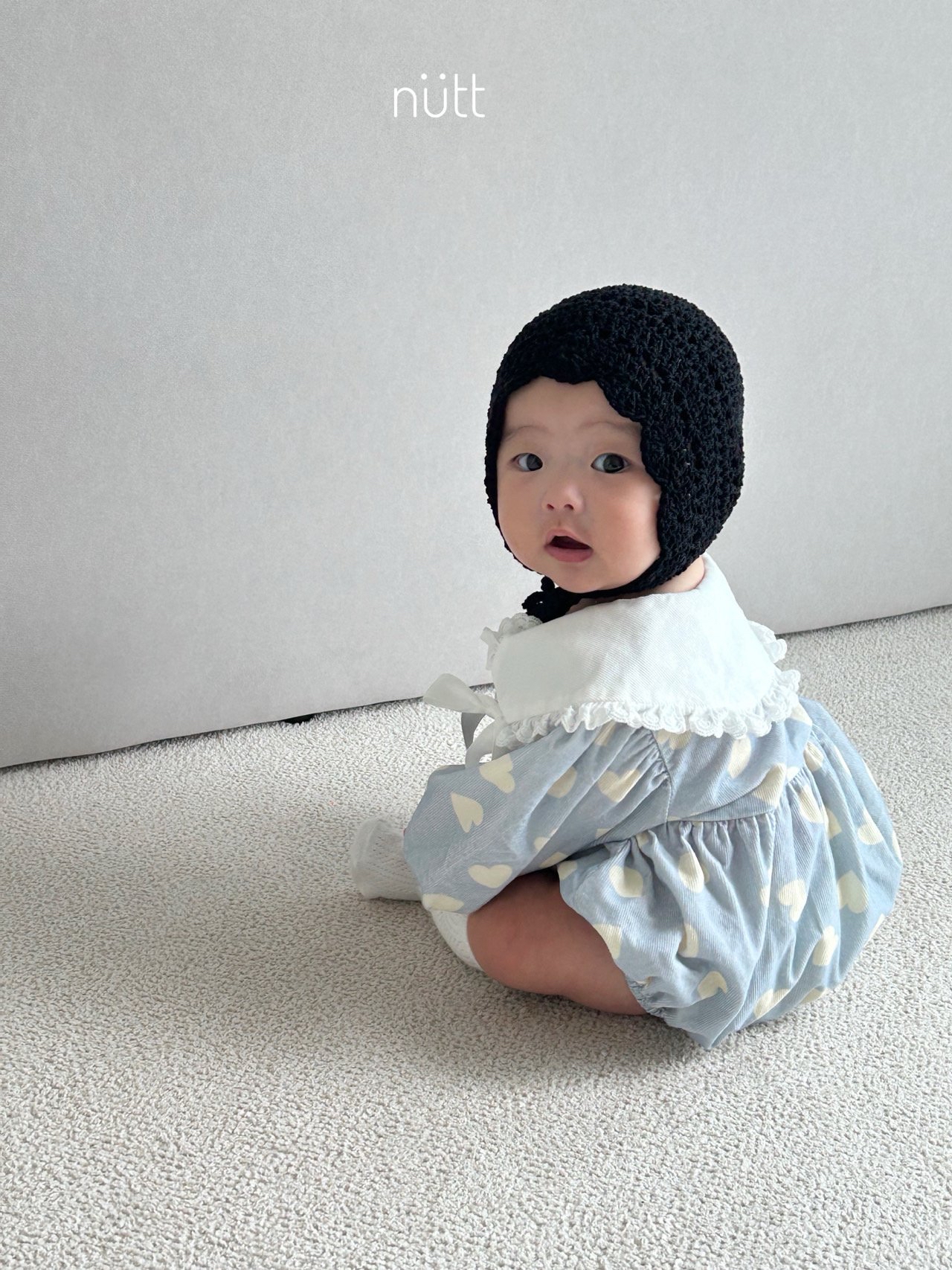 🍂預訂 韓國直送🍂🇰🇷Nutt兩色愛心滿印蕾絲絲帶領純棉包屁衣