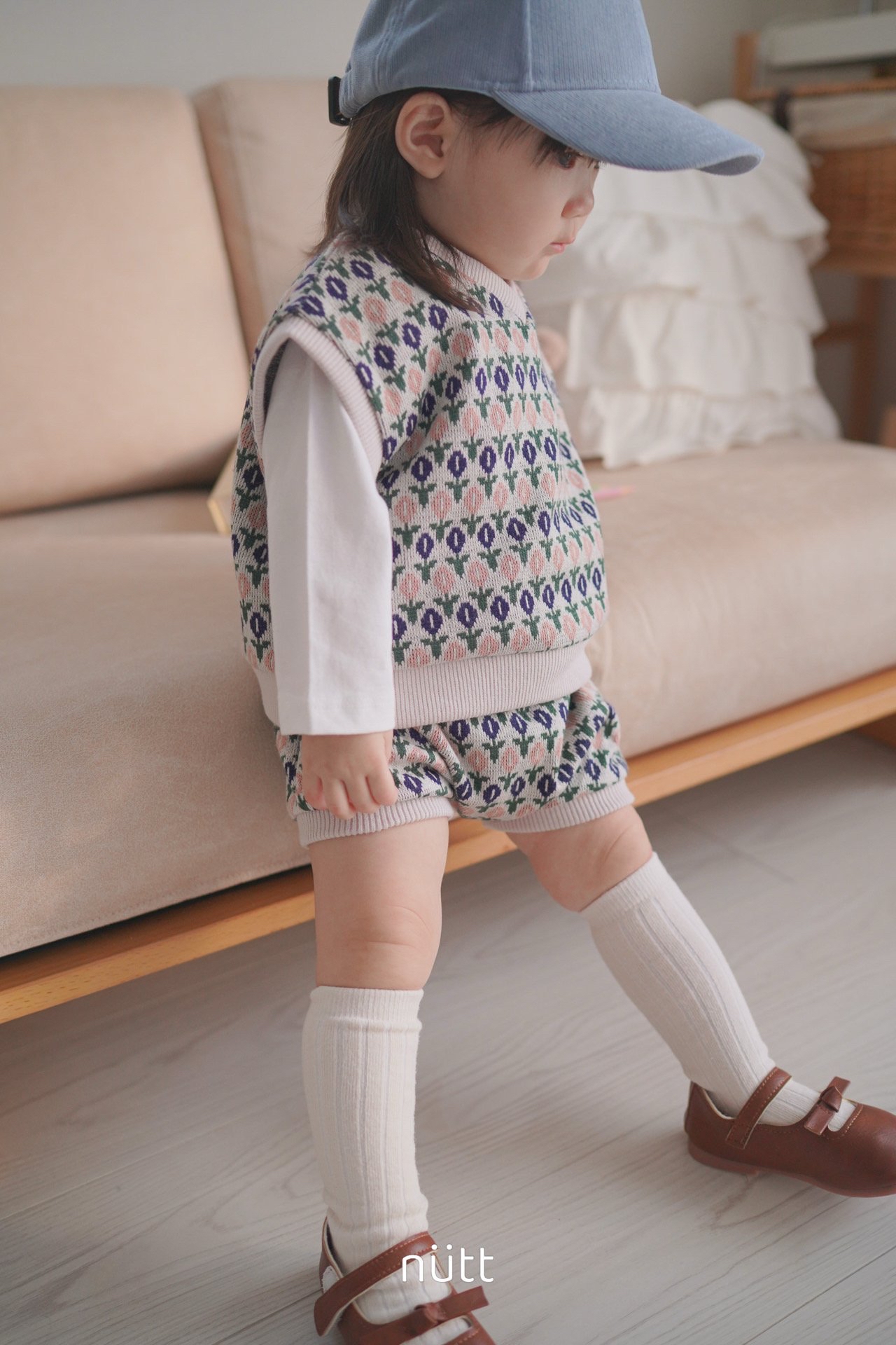🍂預訂 韓國直送🍂🇰🇷Nutt兩色花卉滿印針織背心燈籠褲上下套裝