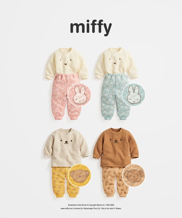 💚代購 台灣直送💚正版授權Miffy系列四色人物滿印鋪棉長袖家居服上下套裝