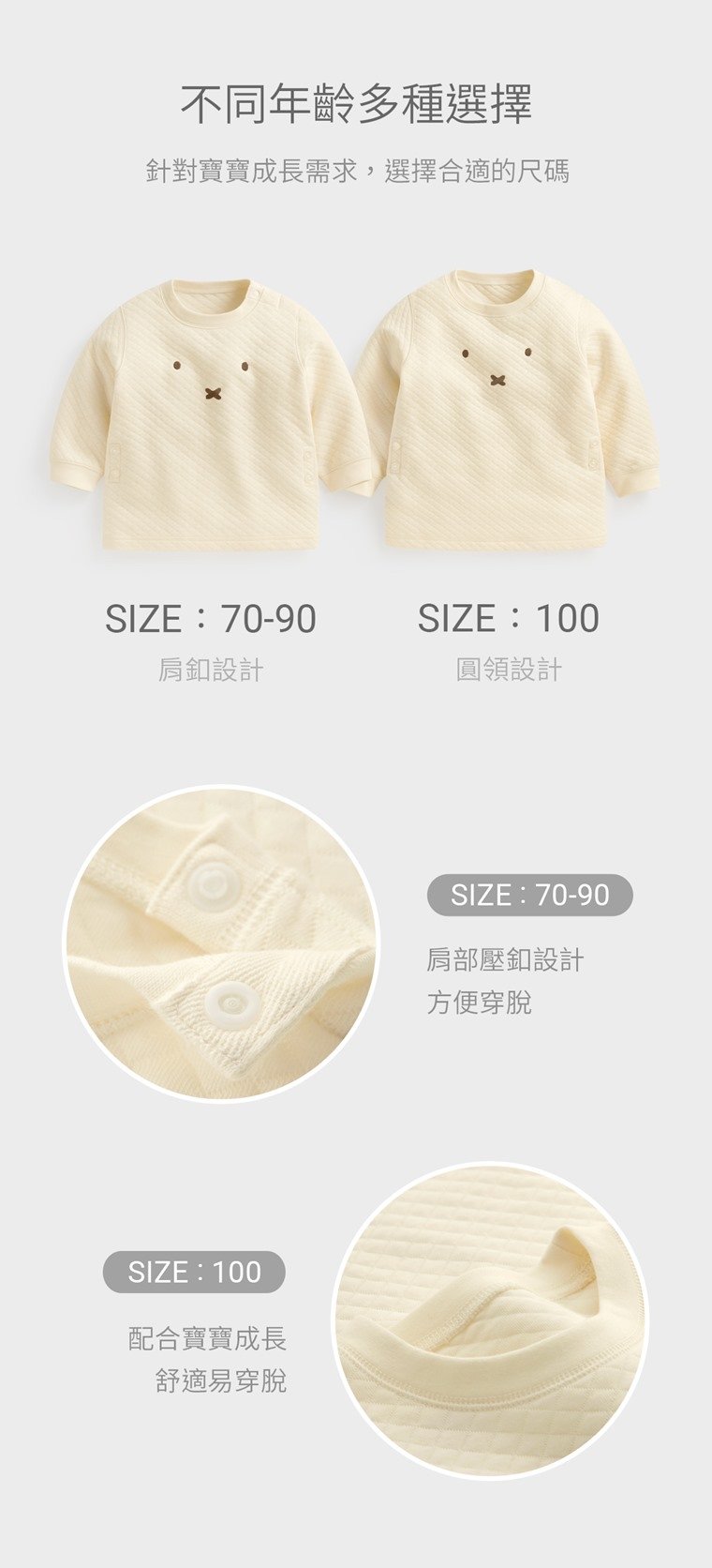💚代購 台灣直送💚正版授權Miffy系列四色人物滿印鋪棉長袖家居服上下套裝 🚚預計貨期:約14-21個工作日到貨 (貨期有機會提早或延遲) 🎨顏色:淺粉|淺水綠|暖黃|黃卡其 📐尺碼:70|80|90|100 上衣 主布:棉 83%、聚酯纖維 17% 羅紋:棉 97%、彈性纖維 3% 褲子 主布:棉 83%、聚酯纖維 17% 羅紋:棉 97%、彈性纖維 3% 商品說明 ※ 因拍攝燈光效果可能造成色差,請以實品顏色為準。
