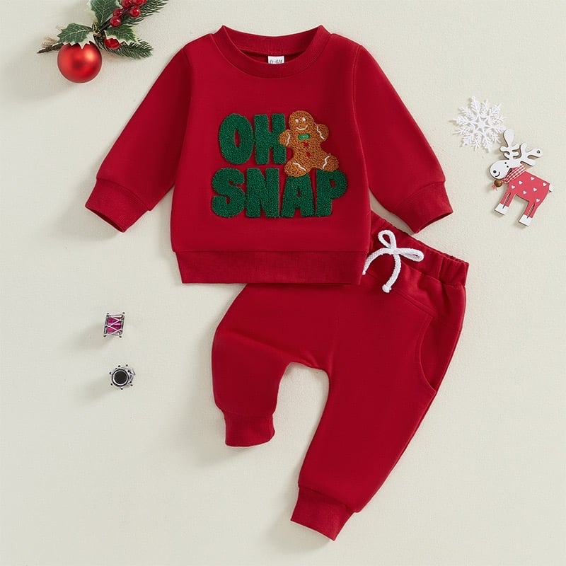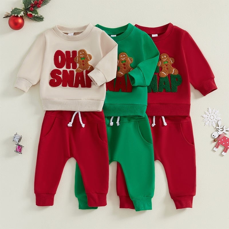 💜歐美廠單 聖誕款預訂💜三色薑餅人字母毛毛貼花衛衣上下套裝 🚚預計貨期:約14個工作天到貨 (貨期有機會提早或延遲 視乎廠商生產及出貨時間) 🎨顏色:紅色|綠色|杏色 📐尺碼:0-6m(70)|6-12m(80)|12-18m(90)|18-24m(100)|2-3Y(110) 📦貨品跟付款先後次序訂貨及發貨💕 ☘︎︎ 廠貨/原單貨為出口貨品,並非購自專門店,有機會被剪牌/剪標/輕微瑕疵,不影響正常穿著,如介意者請勿下單❌