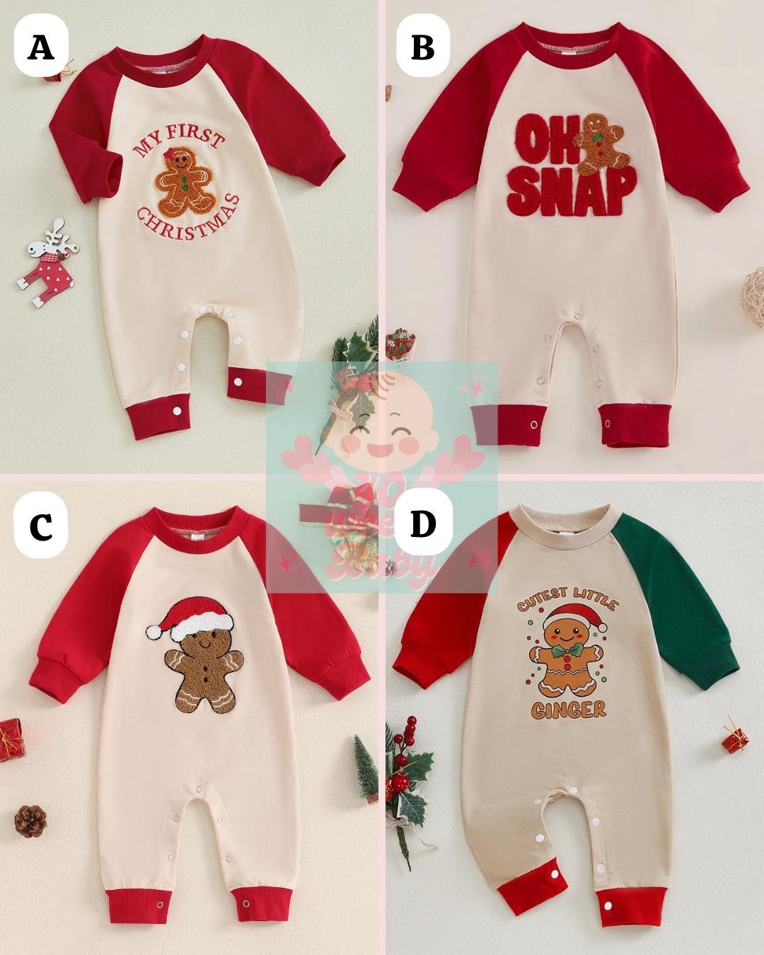 💜歐美廠單聖誕款預訂💜薑餅人系列拼色爬服 🚚預計貨期:約14個工作天到貨 (貨期有機會提早或延遲 視乎廠商生產及出貨時間) 🎨顏色:A|B|C|D 📐尺碼:60|70|80|90 📦貨品跟付款先後次序訂貨及發貨💕 ☘︎︎ 廠貨/原單貨為出口貨品,並非購自專門店,有機會被剪牌/剪標/輕微瑕疵,不影響正常穿著,如介意者請勿下單❌