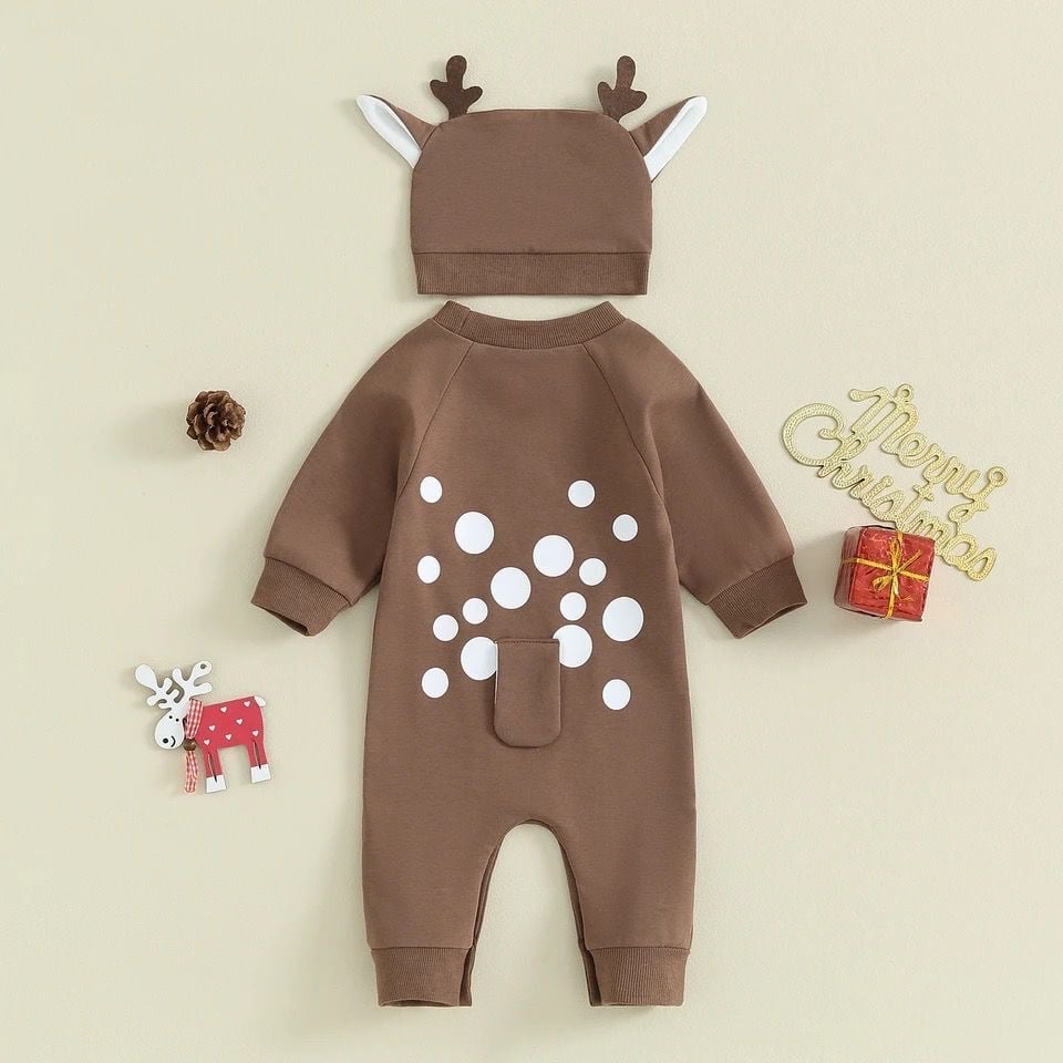 💜歐美廠單聖誕款預訂💜鹿仔造型爬服套裝 包括爬服+帽子 🚚預計貨期:約14個工作天到貨 (貨期有機會提早或延遲 視乎廠商生產及出貨時間) 🎨顏色:啡色 📐尺碼:60|70|80|90 📦貨品跟付款先後次序訂貨及發貨💕 ☘︎︎ 廠貨/原單貨為出口貨品,並非購自專門店,有機會被剪牌/剪標/輕微瑕疵,不影響正常穿著,如介意者請勿下單❌