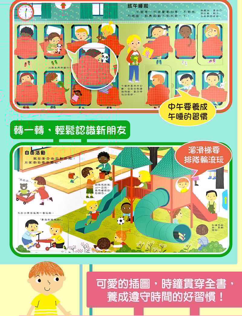 ★入園準備一書搞定──讓孩子理解幼兒園的作息以及時間,使孩子不會再害怕未知的幼兒園,減少入園焦慮。
