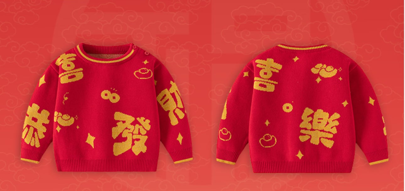 🧨新年款預訂🧨中國風恭喜發財針織毛衣 🚚預計貨期:約14個工作天到貨 (貨期有機會提早或延遲 視乎廠單生產及出貨時間) 80/90碼肩膀有鈕扣✨ 📐尺寸:80|90|100|110|120 100%棉 📦貨品跟付款先後次序訂貨及發貨💕 商品說明 ※ 因拍攝燈光效果可能造成色差,請以實品顏色為準。