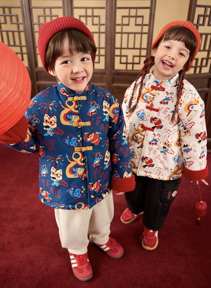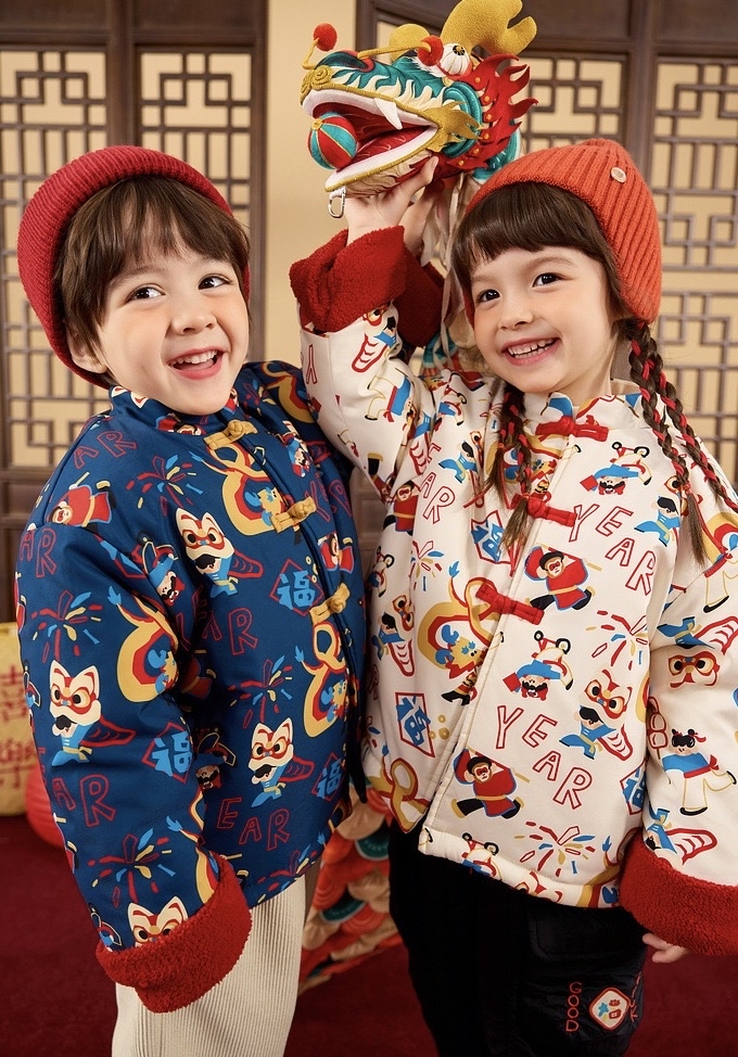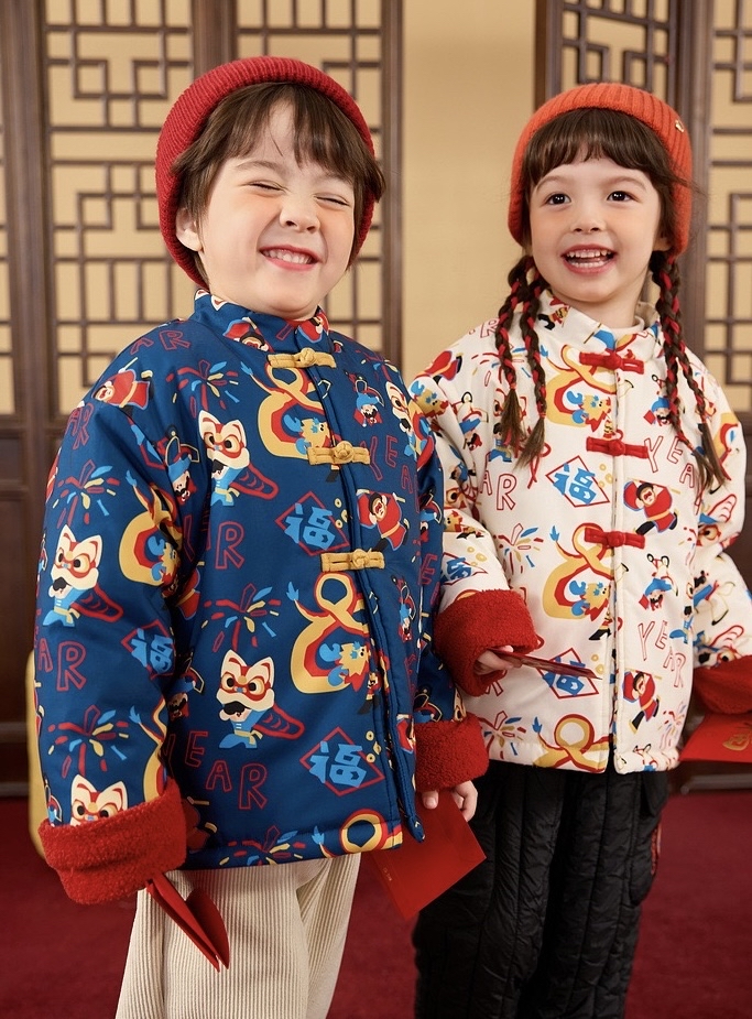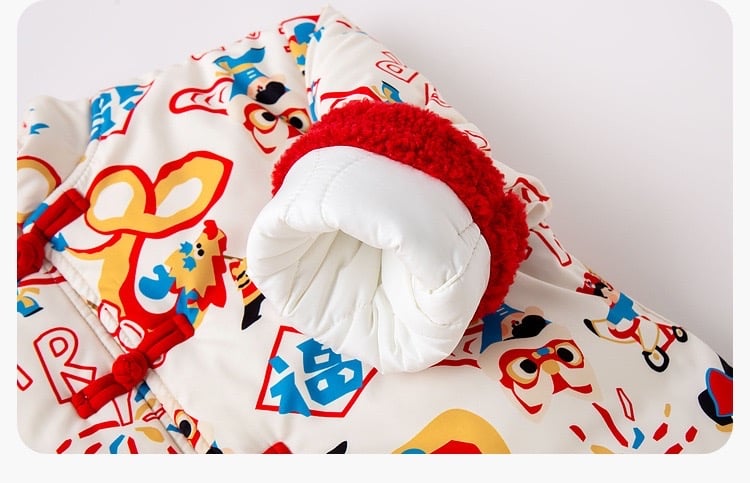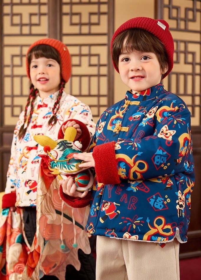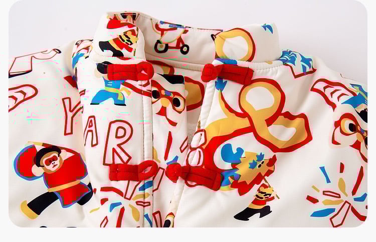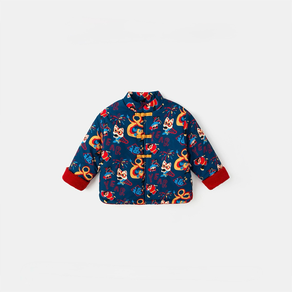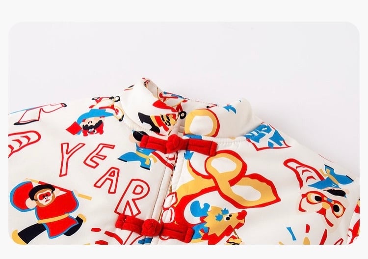 🧨新年款預訂🧨兩色新年舞獅圖案唐裝加絨絎縫夾棉開襟外套