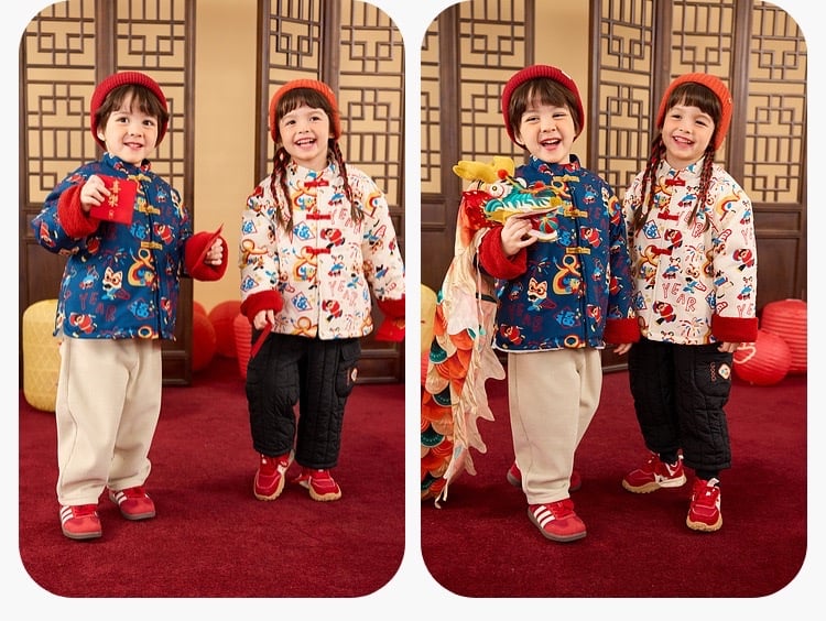 🧨新年款預訂🧨兩色新年舞獅圖案唐裝加絨絎縫夾棉開襟外套 🚚預計貨期:約14個工作天到貨 (貨期有機會提早或延遲 視乎廠單生產及出貨時間) 🎨顏色:米白|深藍 📐尺寸:80|90|100|110|120|130 📦貨品跟付款先後次序訂貨及發貨💕 商品說明 ※ 因拍攝燈光效果可能造成色差,請以實品顏色為準。