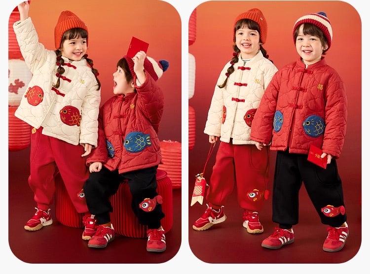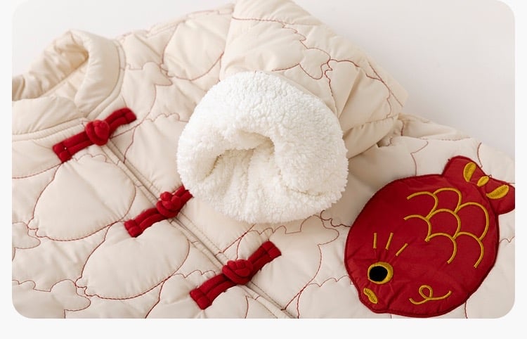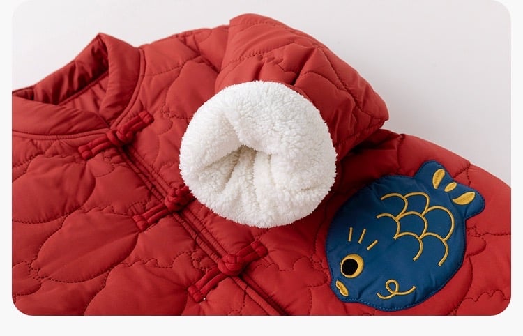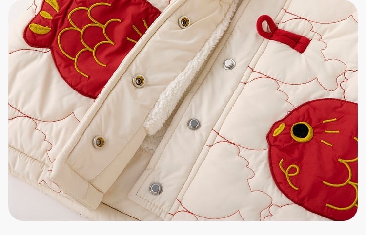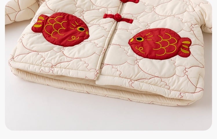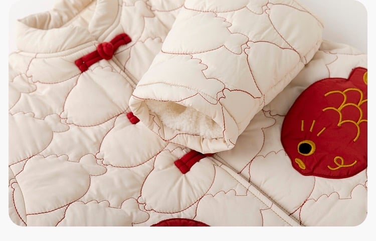 🧨新年款預訂🧨兩色福字刺繡錦鯉口袋唐裝加絨絎縫夾棉開襟外套 🚚預計貨期:約14個工作天到貨 (貨期有機會提早或延遲 視乎廠單生產及出貨時間) 🎨顏色:米白|紅色 📐尺寸:80|90|100|110|120|130 📦貨品跟付款先後次序訂貨及發貨💕 商品說明 ※ 因拍攝燈光效果可能造成色差,請以實品顏色為準。