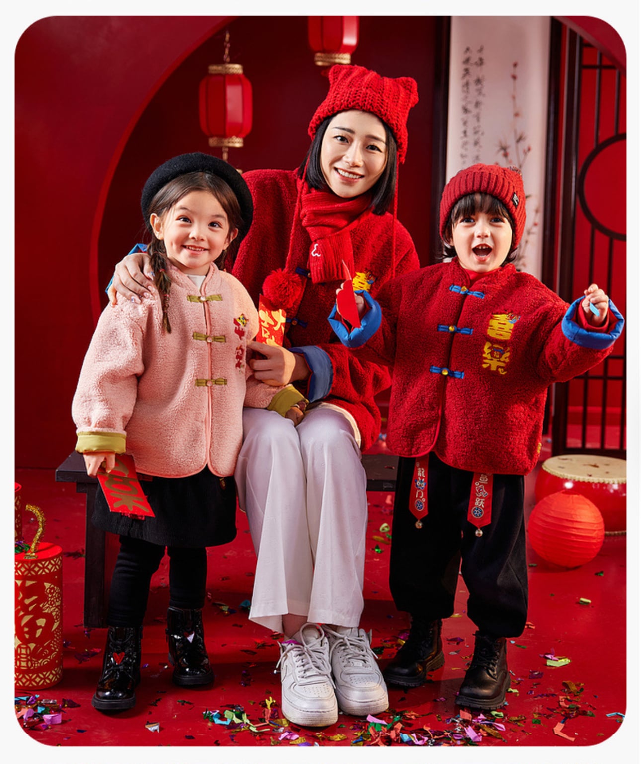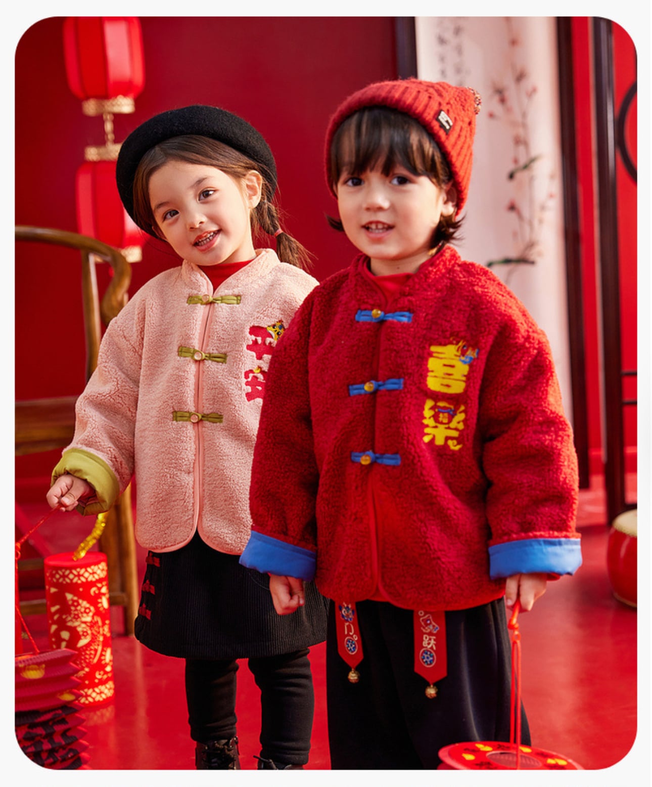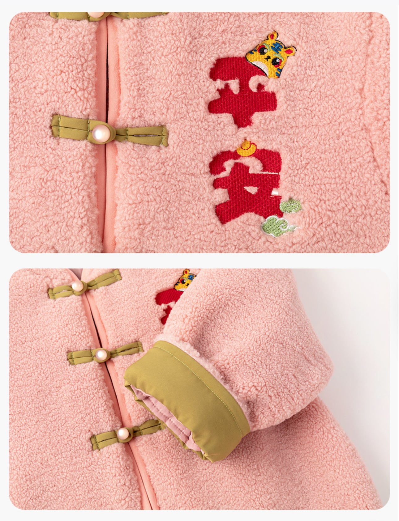 🧨新年款預訂🧨兩色親子款平安喜樂刺繡羊羔絨唐裝外套
