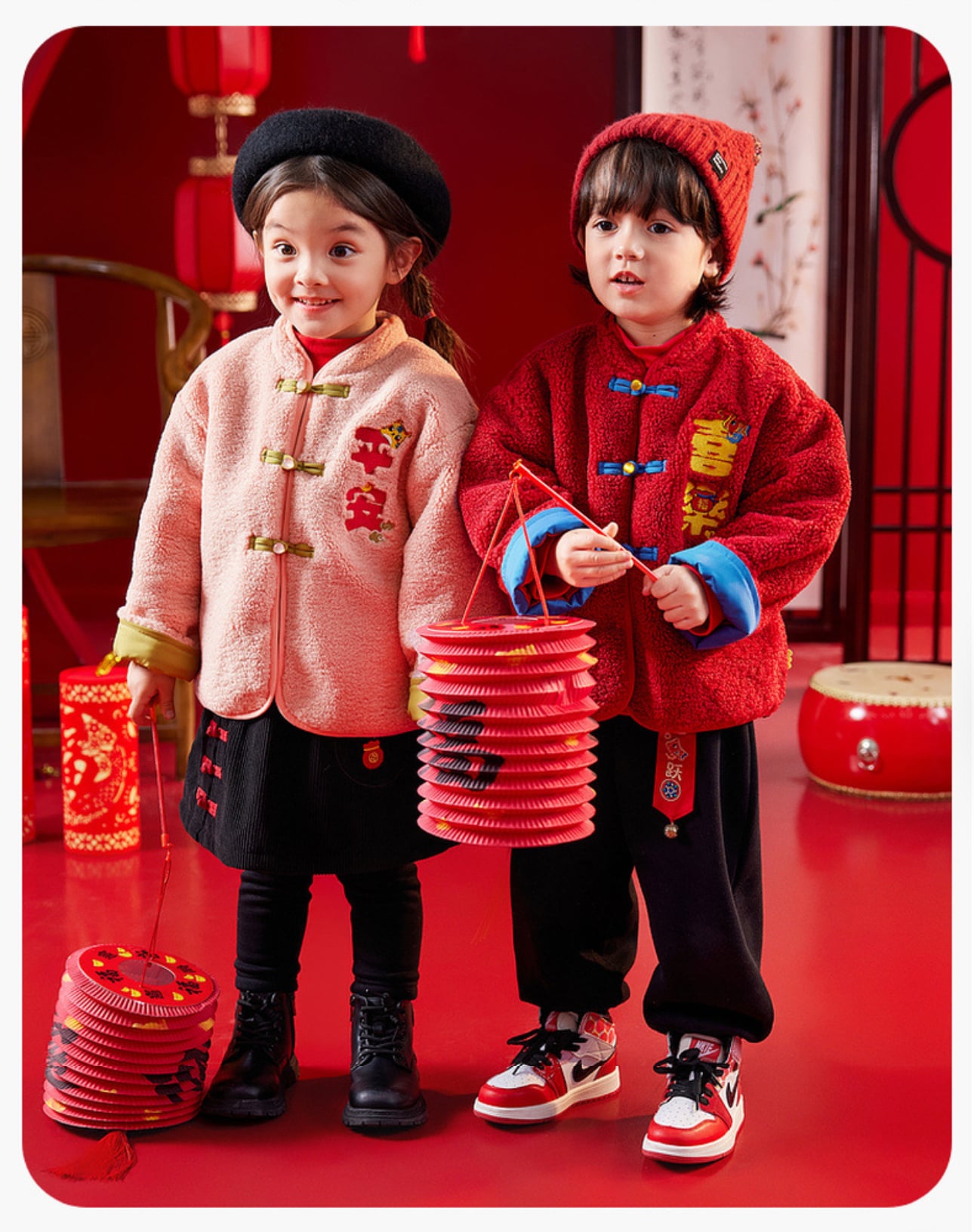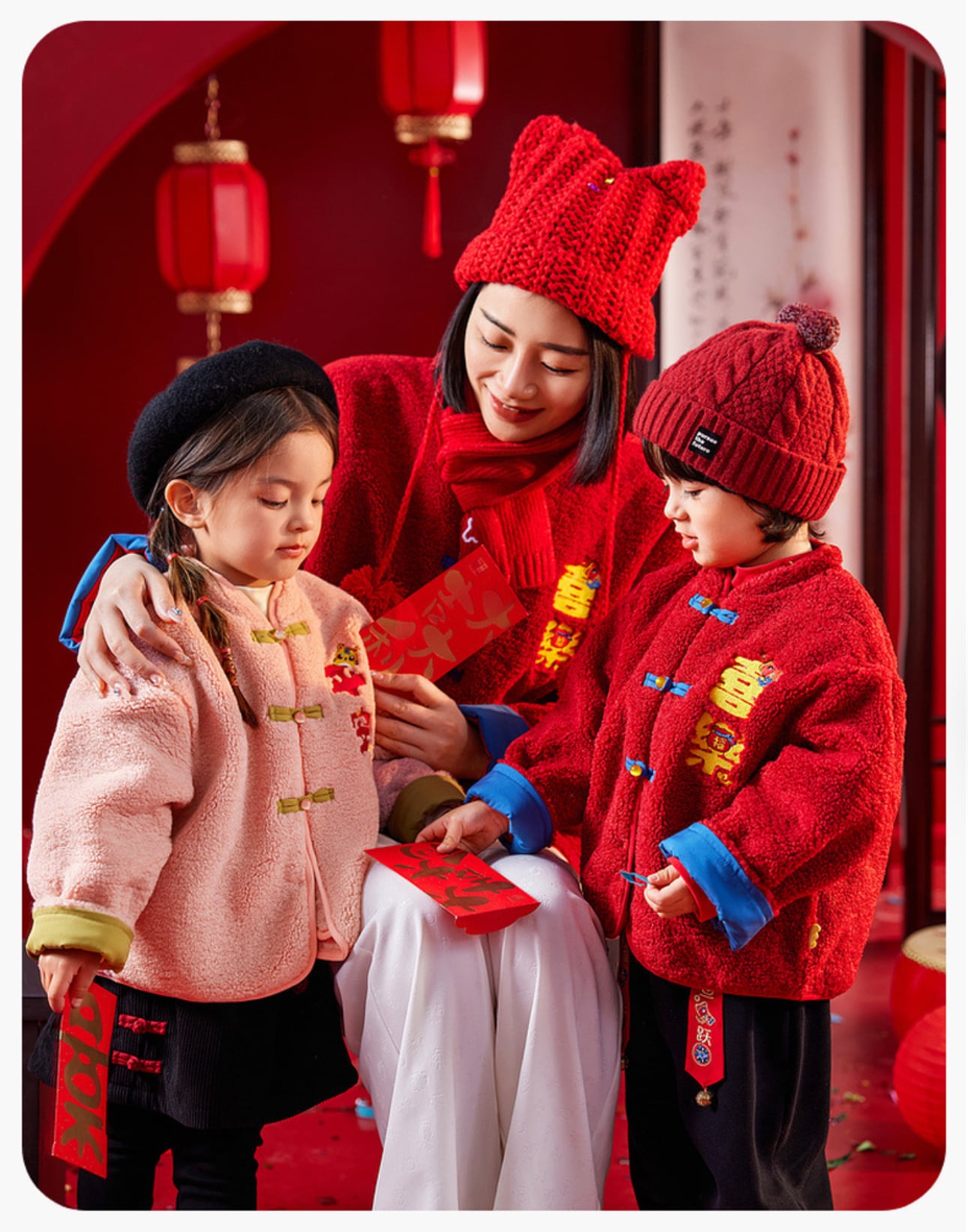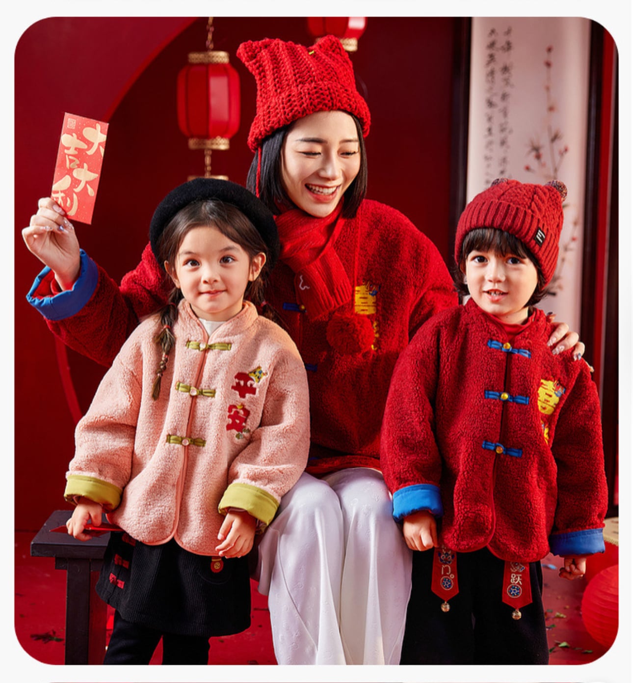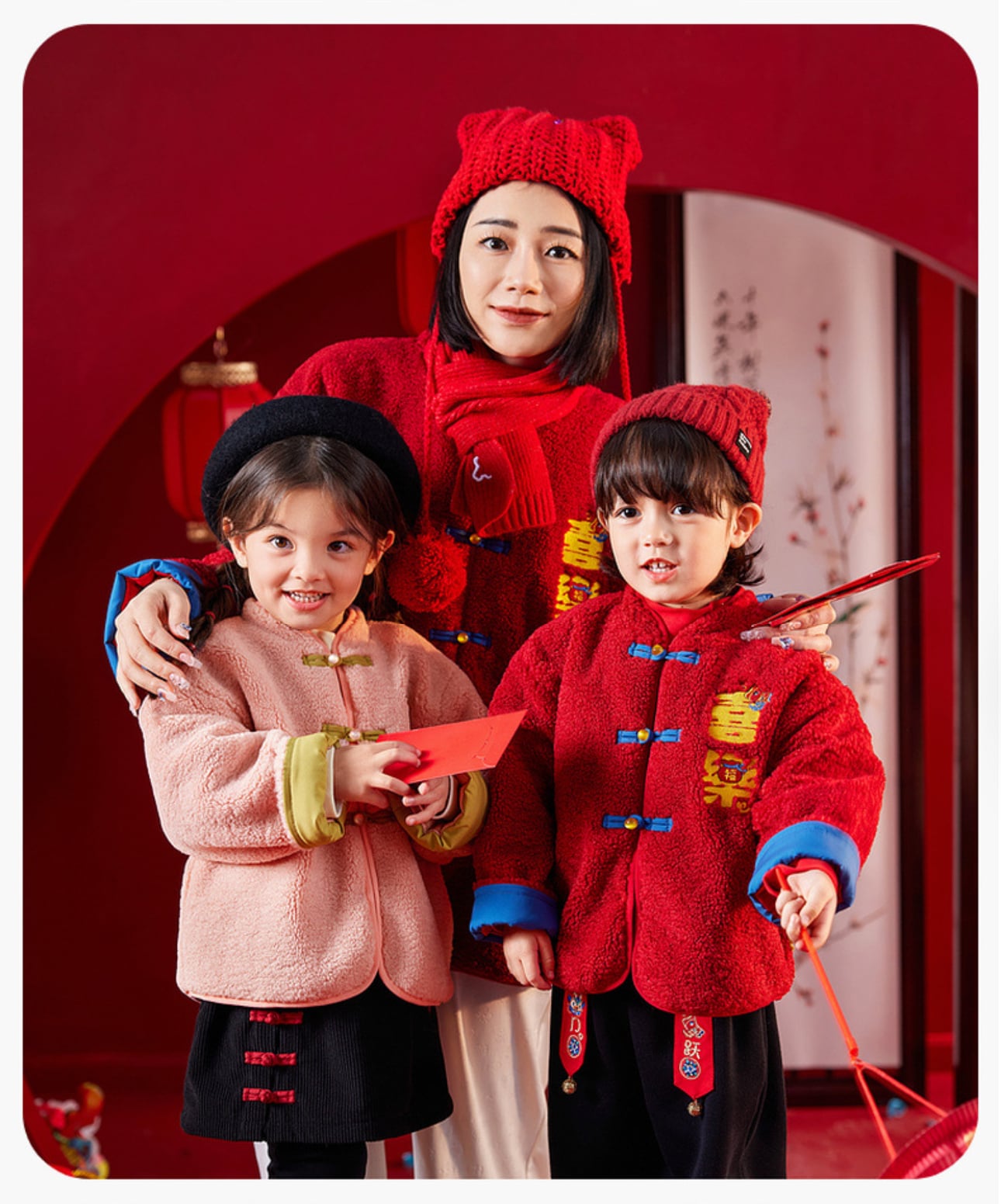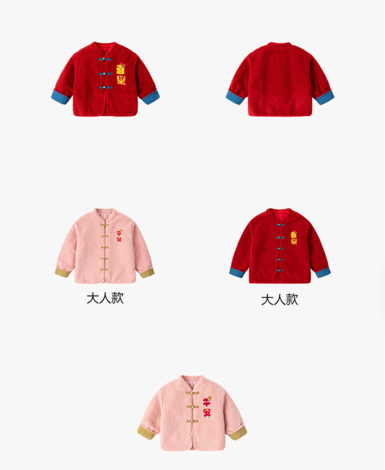 🧨新年款預訂🧨兩色親子款平安喜樂刺繡羊羔絨唐裝外套 🚚預計貨期:約14個工作天到貨 (貨期有機會提早或延遲 視乎廠單生產及出貨時間) 急件可查詢貨期 🎨顏色:粉紅|紅色 📐尺寸:73|80|90|100|110|120|成人均碼 成人衣長69 胸圍61*2 袖長56cm 📦貨品跟付款先後次序訂貨及發貨💕 商品說明 ※ 因拍攝燈光效果可能造成色差,請以實品顏色為準。