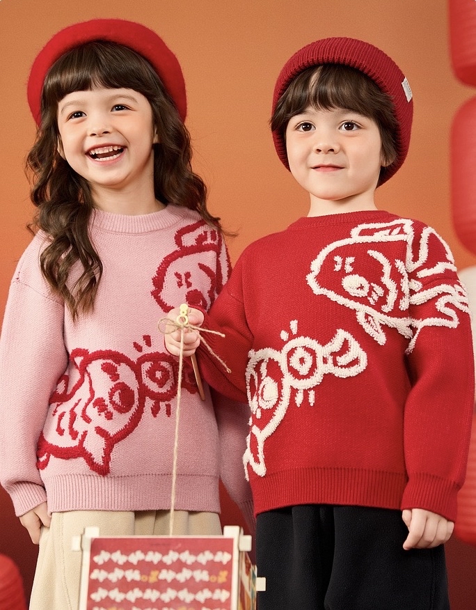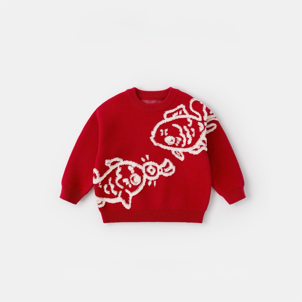 🧨新年款預訂🧨兩色親子款年年有餘3D提花針織毛衣