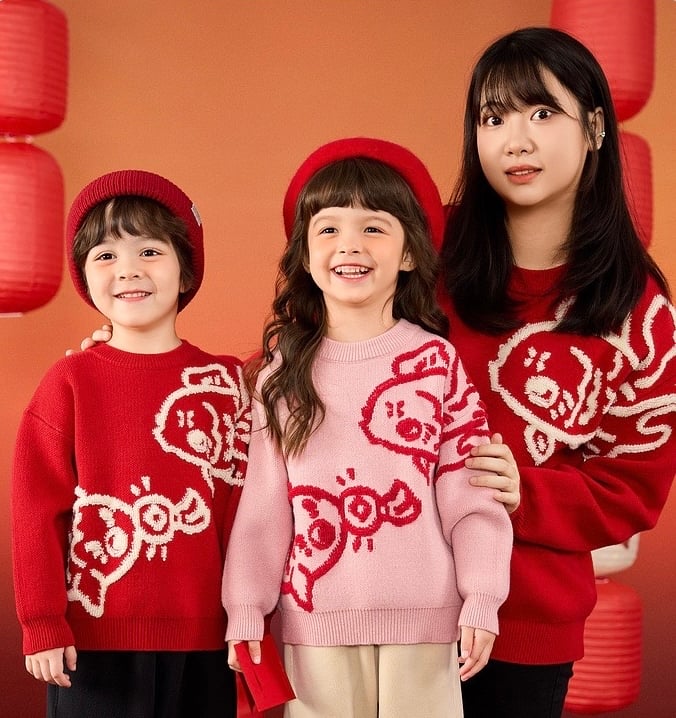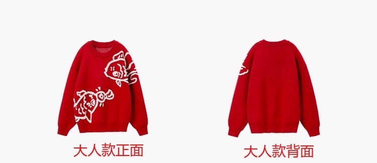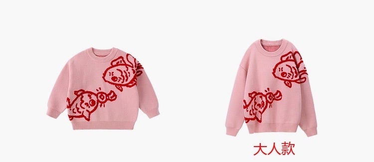 🧨新年款預訂🧨兩色親子款年年有餘3D提花針織毛衣 🚚預計貨期:約14個工作天到貨 (貨期有機會提早或延遲 視乎廠單生產及出貨時間) 🎨顏色:粉紅|紅色 📐尺寸:80|90|100|110|120|130|成人165碼 成人衣長64 胸圍57*2 袖長51cm 📦貨品跟付款先後次序訂貨及發貨💕 商品說明 ※ 因拍攝燈光效果可能造成色差,請以實品顏色為準。
