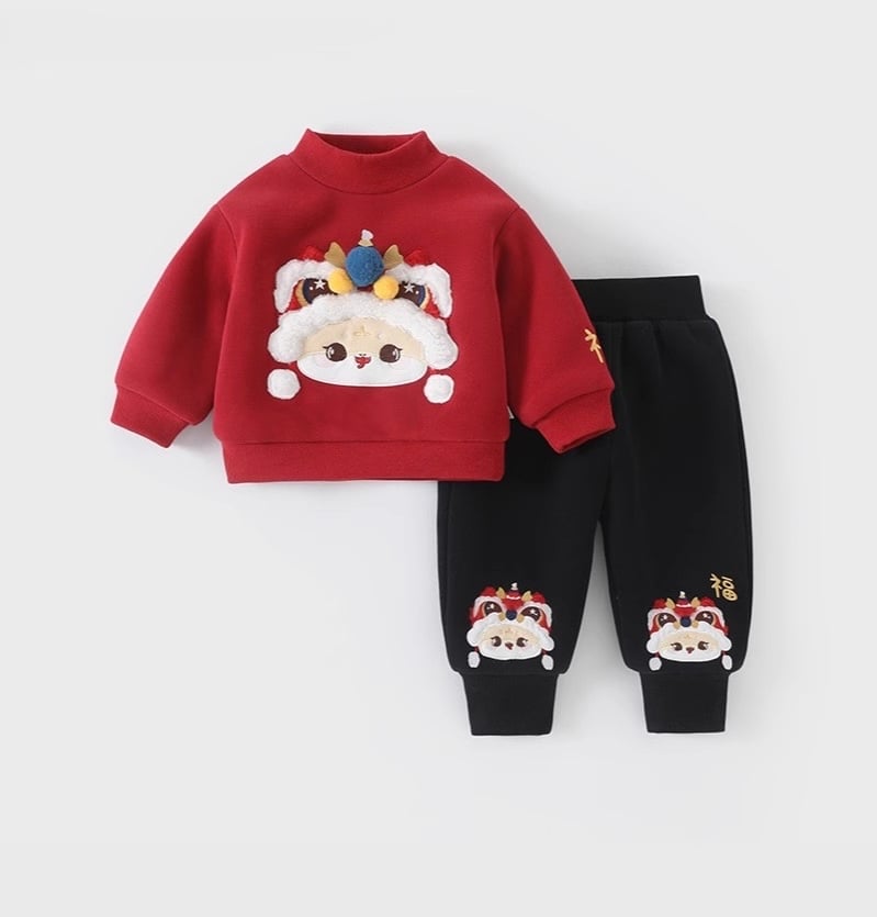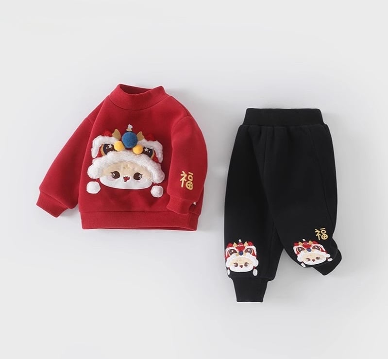 🧨新年款預訂🧨立體波波醒獅福字加絨上下套裝